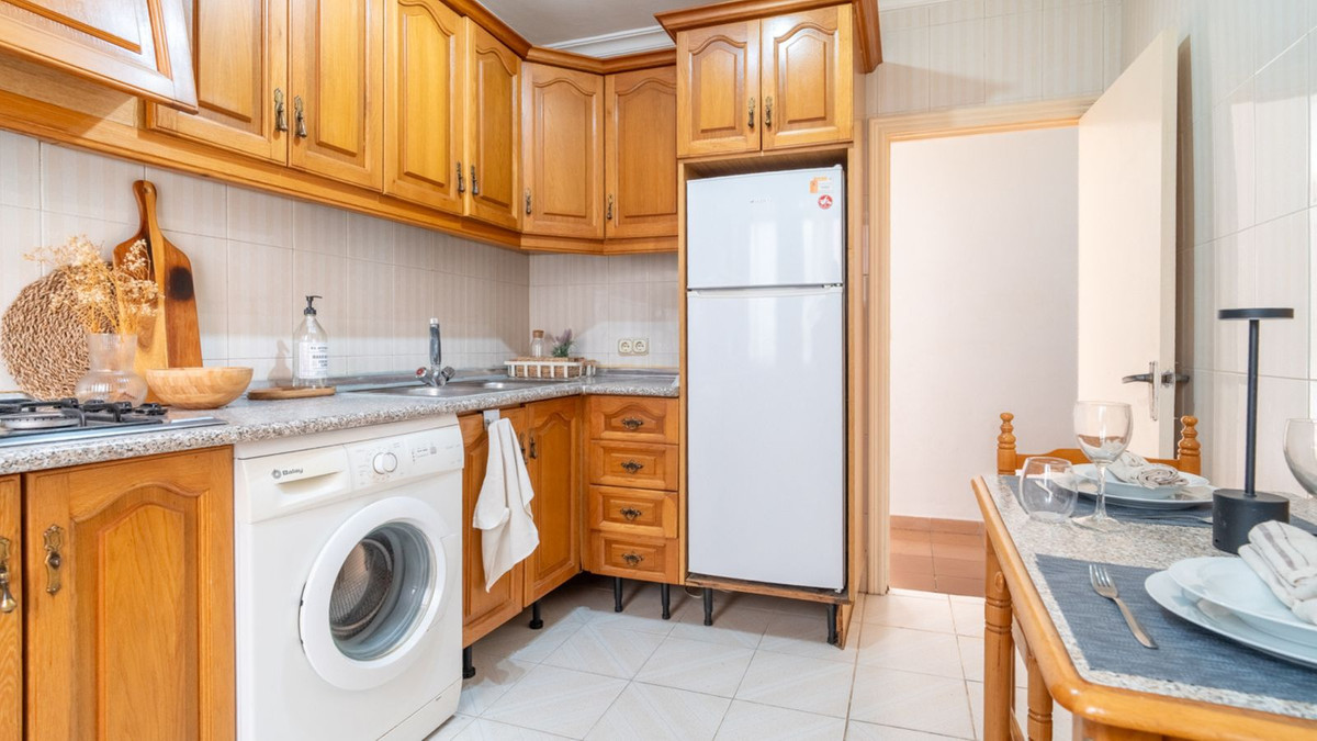 The apartment includes a complete bathroom, fitted wardrobes, tiled floors, and good natural light throughout. The kitchen benefits from ample storage and worktop space, as well as an adjoining utility area. The living area connects directly to the balcony, creating an ideal space for relaxing or enjoying the open air. Overall, the property is in good condition and ready to move into.