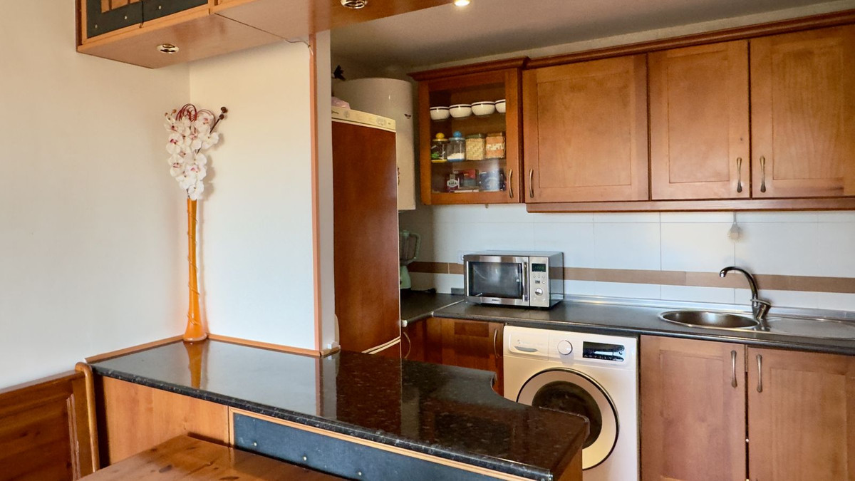 A full-width terrace runs along the entire apartment, with direct access from both the living room and the master bedroom. From the terrace, you can enjoy beautiful panoramic views over Fuengirola and the Mediterranean Sea – a perfect spot for morning coffee or relaxing evenings in the sun.