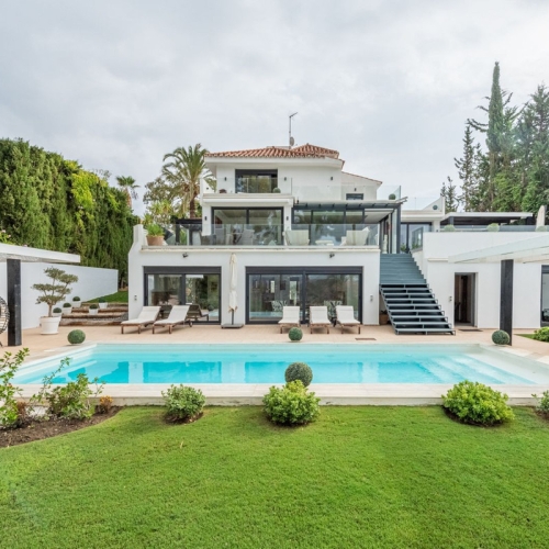This luxurious and extraordinary villa located in the area of Nueva Andalucía, with a panoramic view of the La Concha mountain and Mediterranean sea. It is only a 5-minute drive from Puerto Banus, with its beautiful beaches and great restaurants.