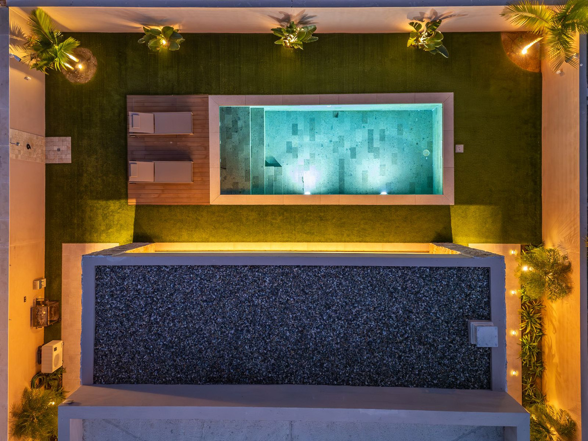 It features a heated saltwater swimming pool (3 x 17 m), private garden and an outdoor terrace fully equipped for al fresco dining or enjoying a drink at sunset with mountain views.
