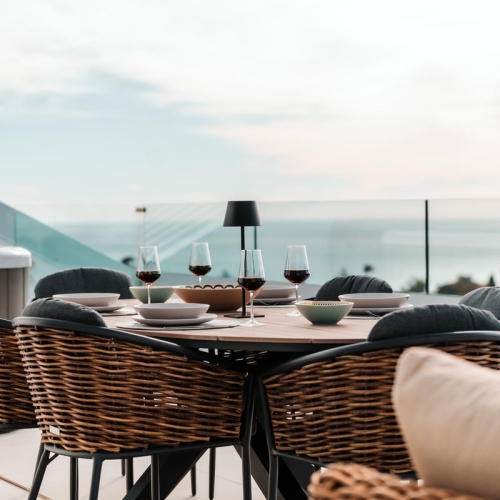 En imponerande terrass på nästan 18 m², idealisk för avkoppling, middagar utomhus och magiska solnedgångar över Medelhavet.