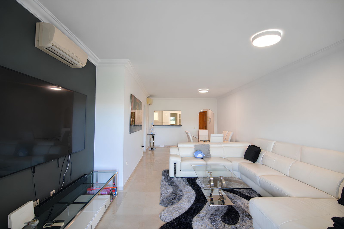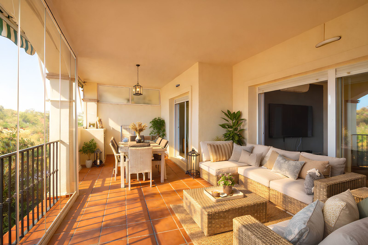 En av bostadens stora fördelar är den rymliga terrassen med öppen utsikt över golfbanan, en perfekt plats för avkoppling och för att njuta av Costa del Sols behagliga klimat året runt.
