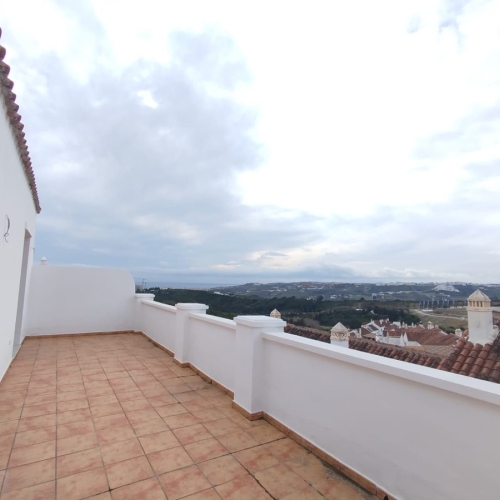 Övervåningen rymmer sovdelen med hall, korridor, två sovrum med inbyggda garderober och två kompletta badrum, vilket ger komfort och avskildhet. Dessutom finns en stor öppen terrass, idealisk för att njuta av Costa del Sols klimat och imponerande panoramautsikt.