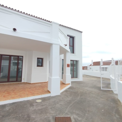 Huvudentrén ligger på övervåningen där du möts av ett ljust vardagsrum/matsal, kök med tvättdel samt en trevlig täckt terrass, perfekt att njuta av året runt tack vare det gynnsamma klimatet.