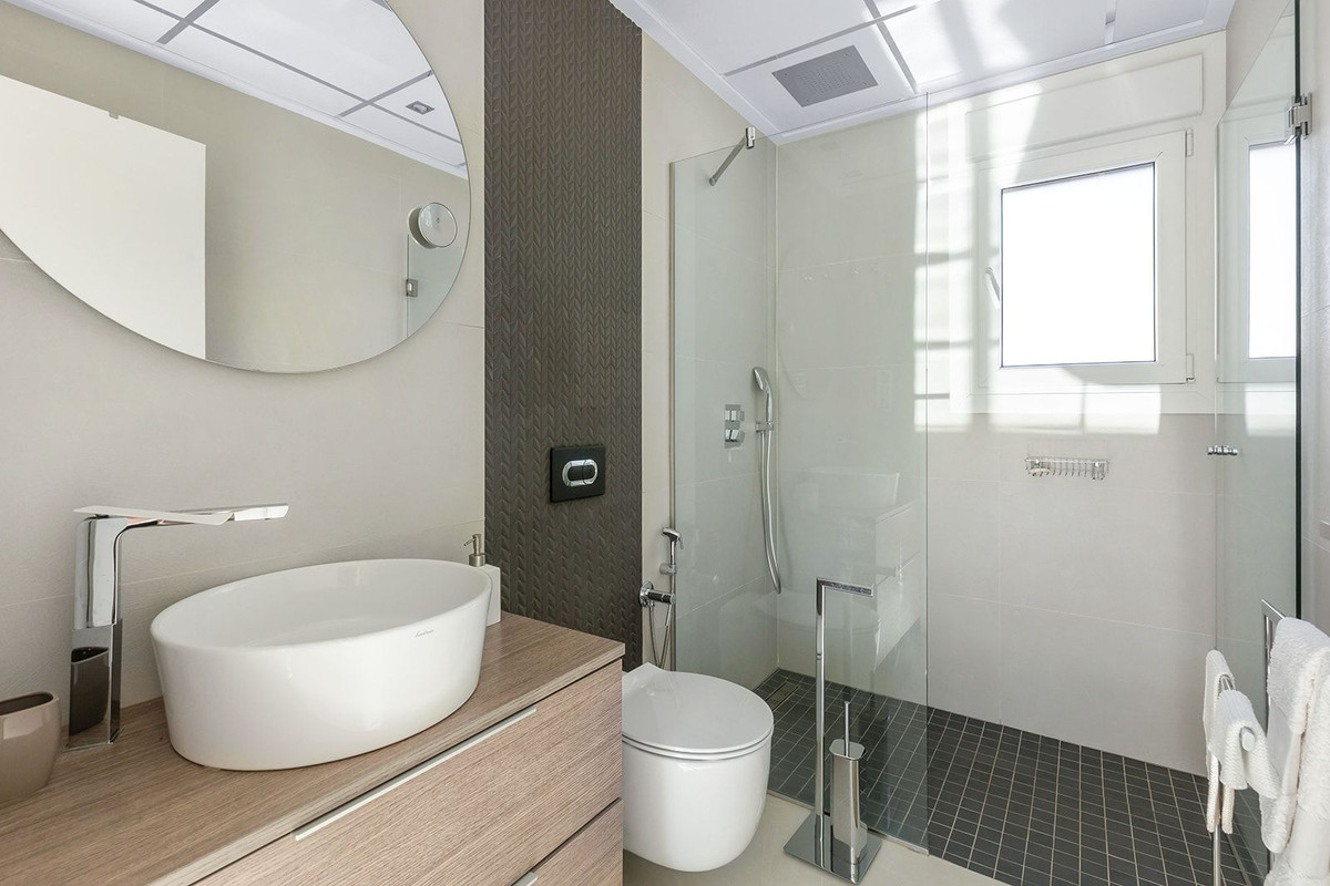 The first floor offers two spacious bedrooms, both with en-suite bathrooms and built-in wardrobes. One of the bedrooms enjoys access to a private terrace, perfect for morning coffee or relaxation.