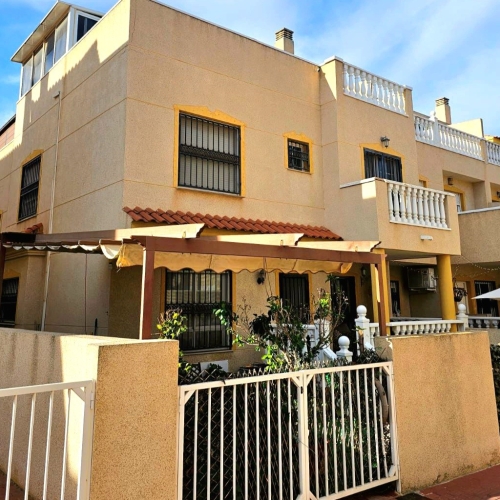 Great property close to Guardamar we have this 4/5 Bed 2 Bath Townhouse. 2 Bedrooms can be found in the under build with a large bathroom, with Jacuzzi bath. A further 2 bedrooms upstairs, plus a large lounge/kitchen area. On the top floor you will find another room thats used as a bedroom and the terrace. The property benefits from a communal swimming pool and being only a few minutes drive from the local blue flag beaches. A stroll to the town center would take around 10/15 minutes; the airports of Alicante and Murcia are around 35/40 minutes' drive away.