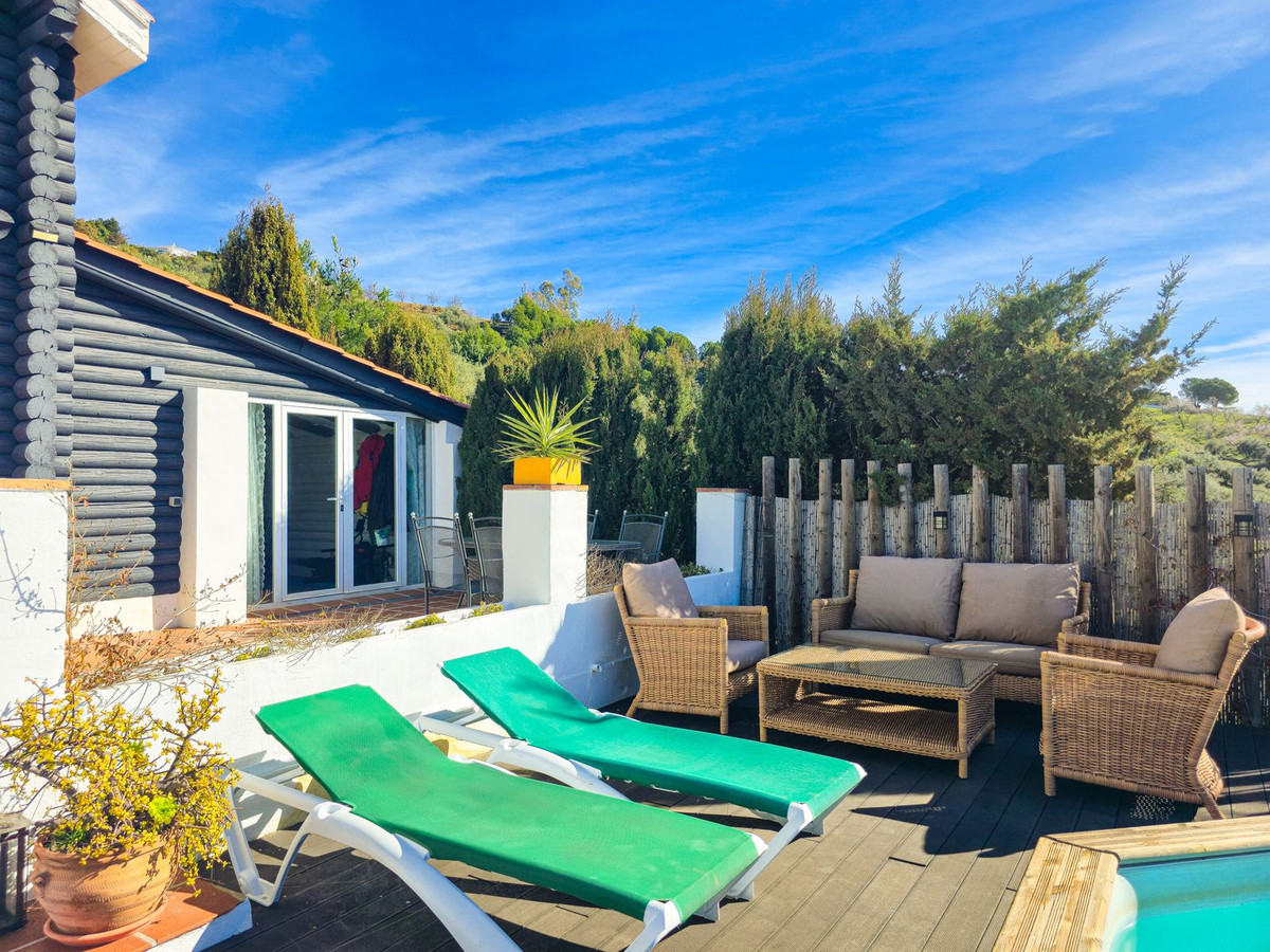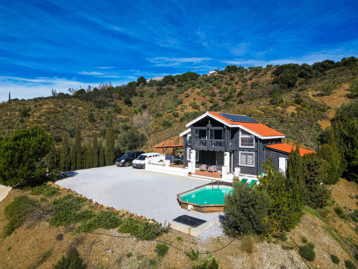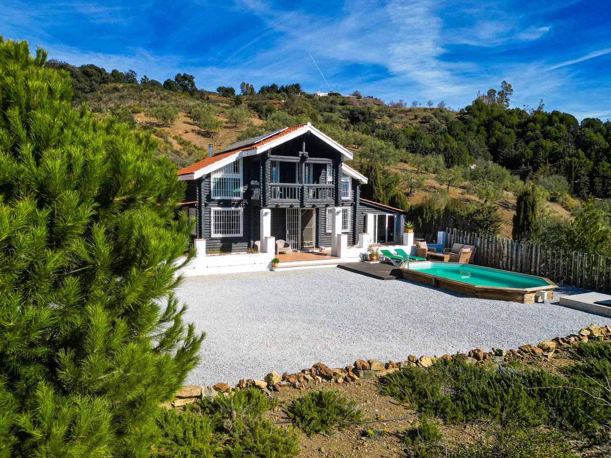 Denna charmiga söderläge trästuga ligger på en generös tomt på 2 555 m² i ett fantastiskt och lugnt läge med vacker utsikt över bergen och havet. Den har ett idealiskt läge bara 5 minuter med bil från Canillas de Albaida och Árchez, och bara 10 minuter från Cómpeta. Fastigheten har utmärkt tillgänglighet utan ojämna eller grusvägar.