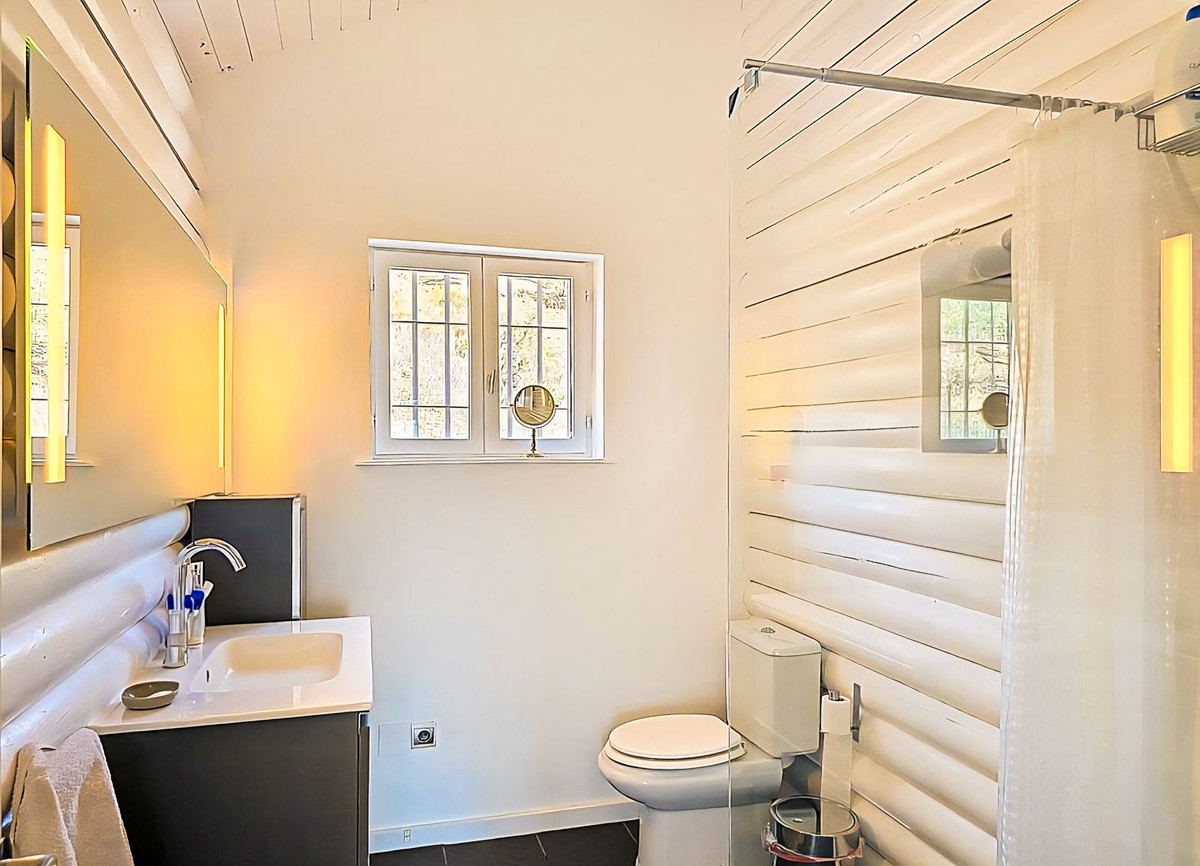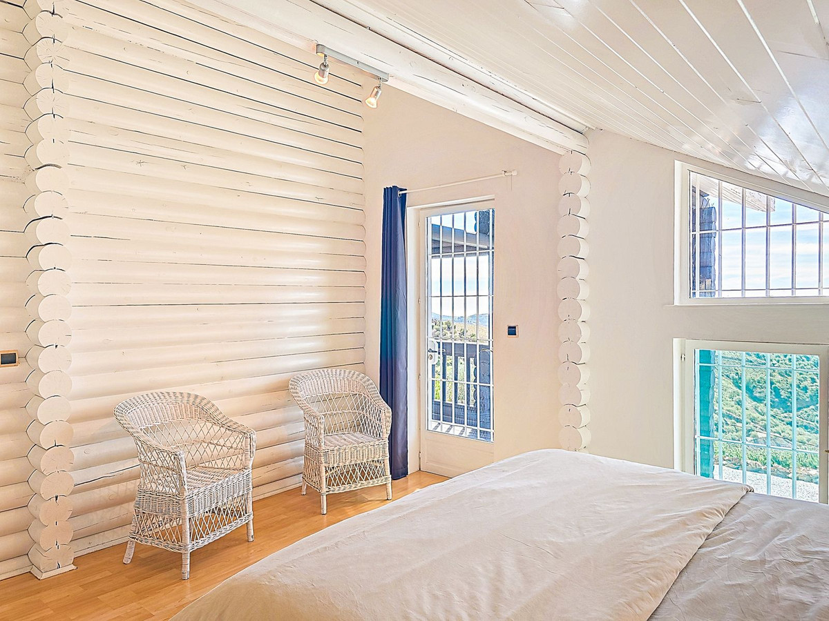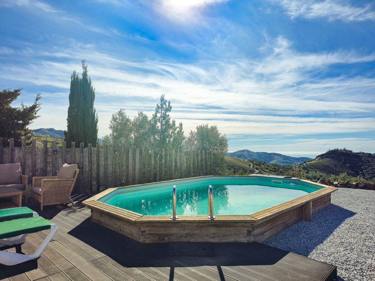 Denna charmiga söderläge trästuga ligger på en generös tomt på 2 555 m² i ett fantastiskt och lugnt läge med vacker utsikt över bergen och havet. Den har ett idealiskt läge bara 5 minuter med bil från Canillas de Albaida och Árchez, och bara 10 minuter från Cómpeta. Fastigheten har utmärkt tillgänglighet utan ojämna eller grusvägar.