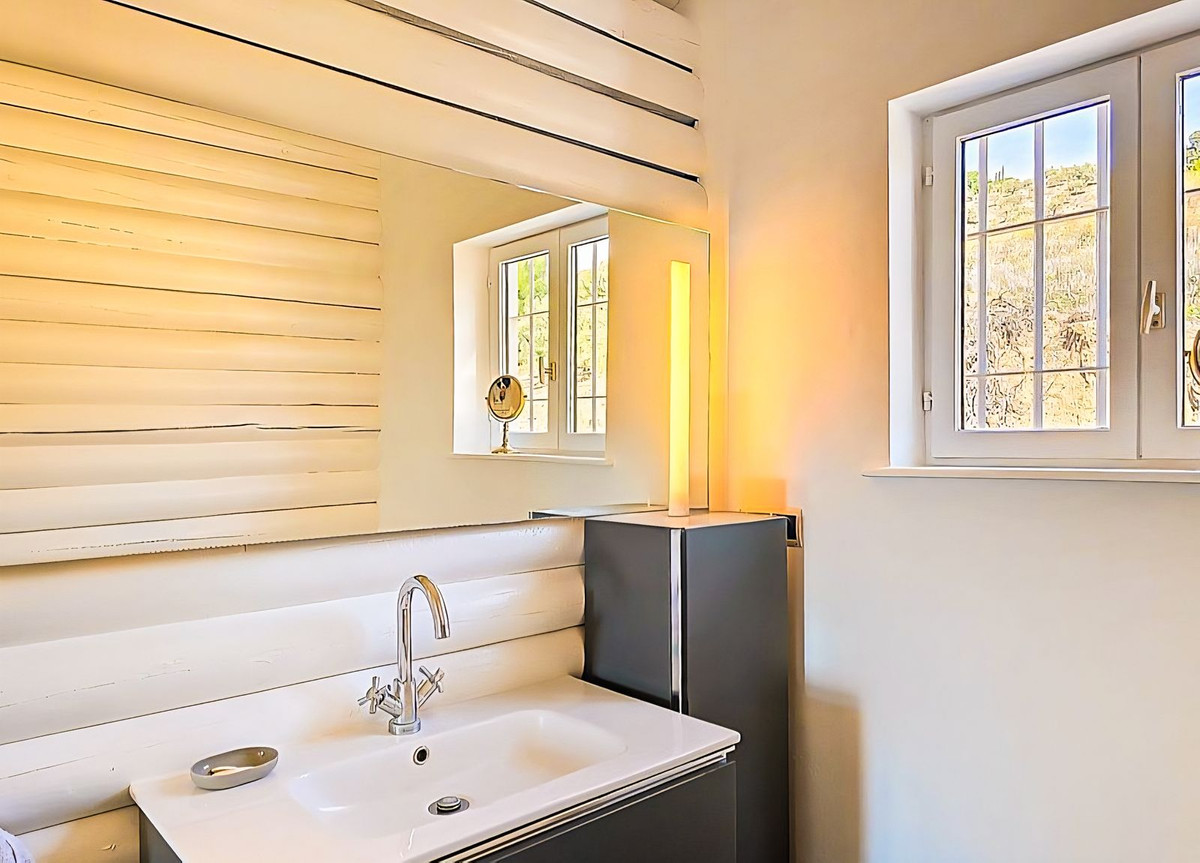 Fastigheten har egen vattenkälla, solpaneler, internetanslutning och säljs i stort sett möblerad.