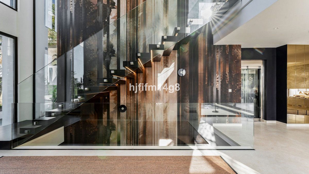 Villan har fem rymliga sovrum, alla med eget badrum, samt två extra gästtoaletter. Stora fönster från golv till tak fyller interiören med naturligt ljus och ramar in den spektakulära utsikten över golfbanan och dalen. Den sömlösa övergången mellan inomhus- och utomhusytor skapar en ljus och luftig atmosfär, idealisk för både vardagsliv i Medelhavsstil och elegant underhållning. En privat hiss förbinder alla våningsplan och fastigheten är helt anpassad för rullstolsburna, vilket kombinerar sofistikerad design med praktisk tillgänglighet.