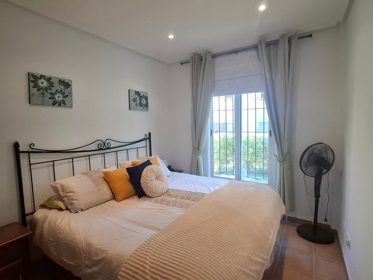 The townhouse is arranged over two floors and offers three spacious bedrooms, (one on the ground floor), all with built-in wardrobes. The principal bedroom benefits from an en-suite bathroom. Two of the bedrooms, along with the lounge, are equipped with dual hot and cold air conditioning. Additional storage space is available in the storage room beneath the stairwell.