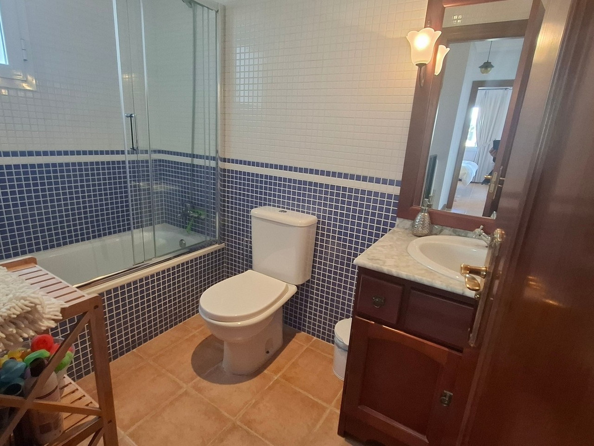 The secure gated community offers excellent facilities, including two swimming pools, one of which is a heated indoor pool ideal for the cooler winter months. There are also well-maintained communal gardens and a separate children’s play area.