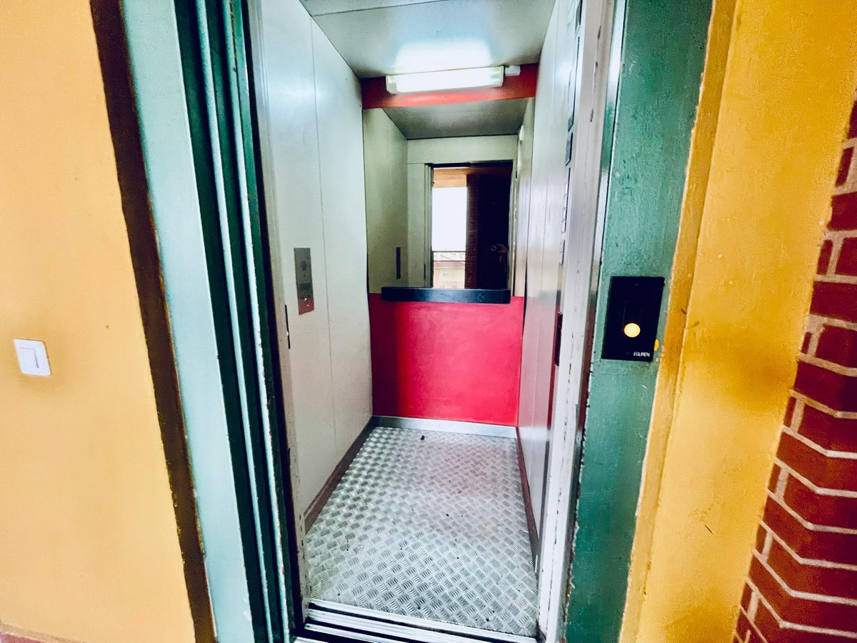 This flat in need of renovation is located on the fourth floor with a lift, offering natural light and unobstructed views from its terrace.