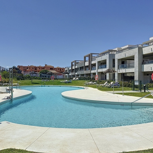 Bright south-facing duplex apartment for sale in the peaceful and well-established residential community of Bahía de Casares on the prestigious New Golden Mile.