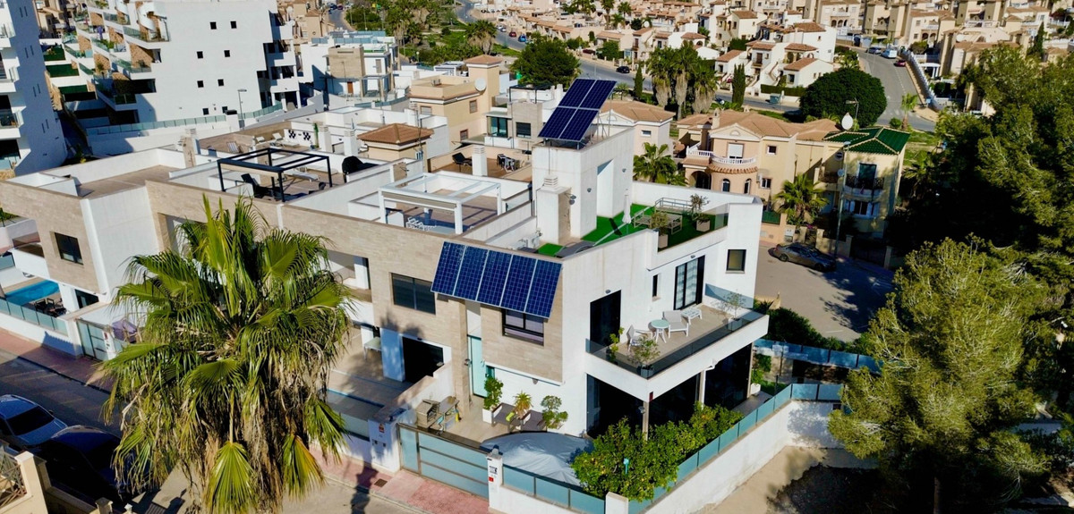 This stunning corner villa, nestled at the end of a peaceful cul-de-sac in the sought-after area of Villamartin, offers the perfect blend of luxury and modern living. With 3-4 spacious bedrooms and 3 bathrooms (2 of which are en suite), this home provides ample space for family living and guests. The open-plan living area is designed for modern comfort, featuring a sleek, contemporary kitchen and a bright, airy living room that flows seamlessly into the private conservatory, ideal for year-round relaxation.