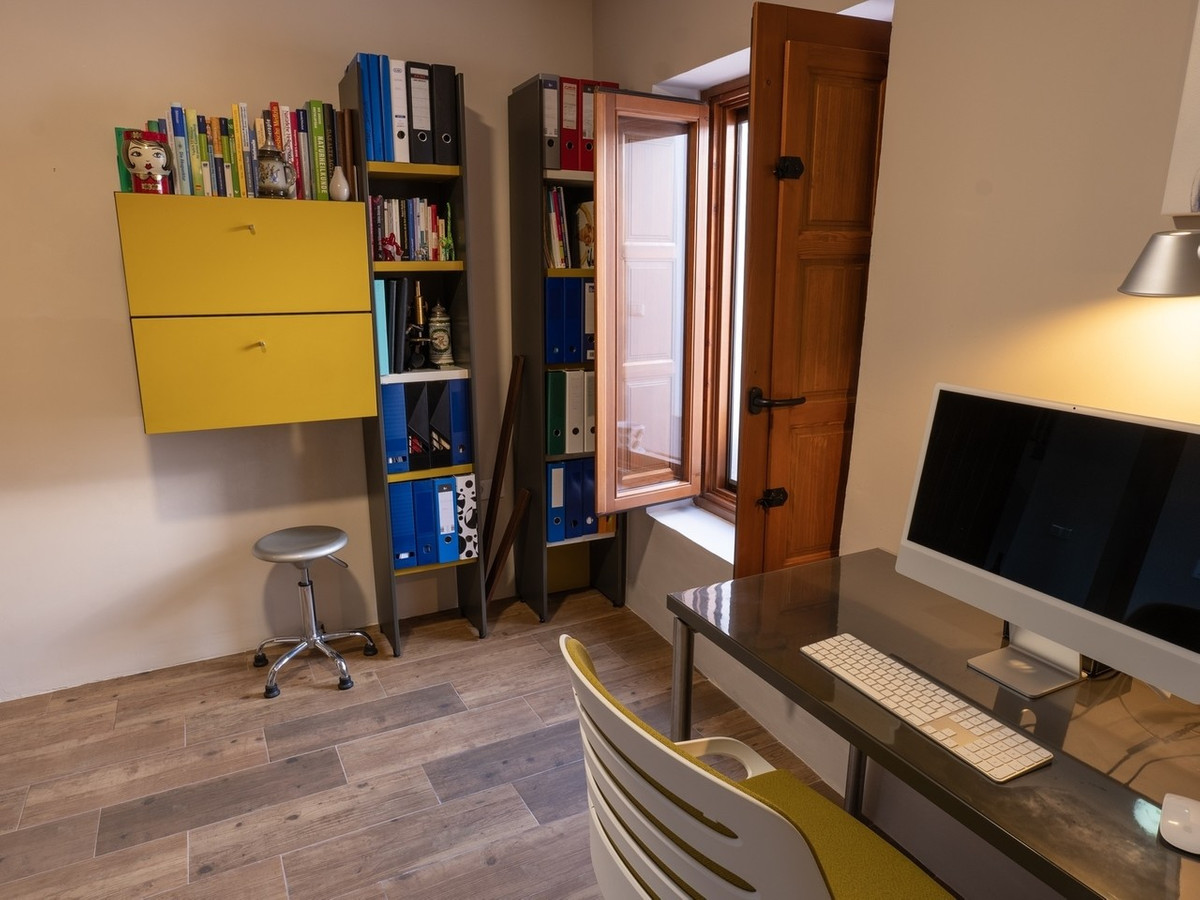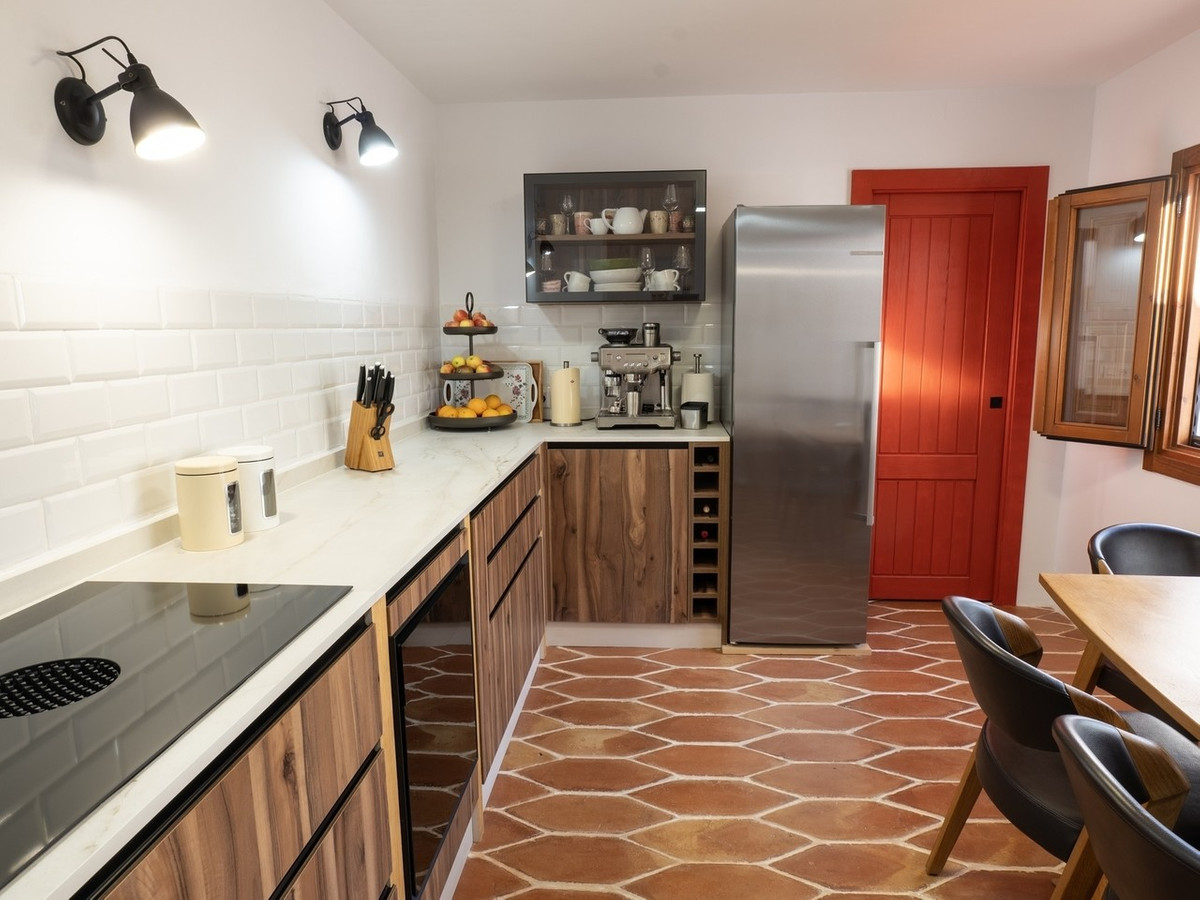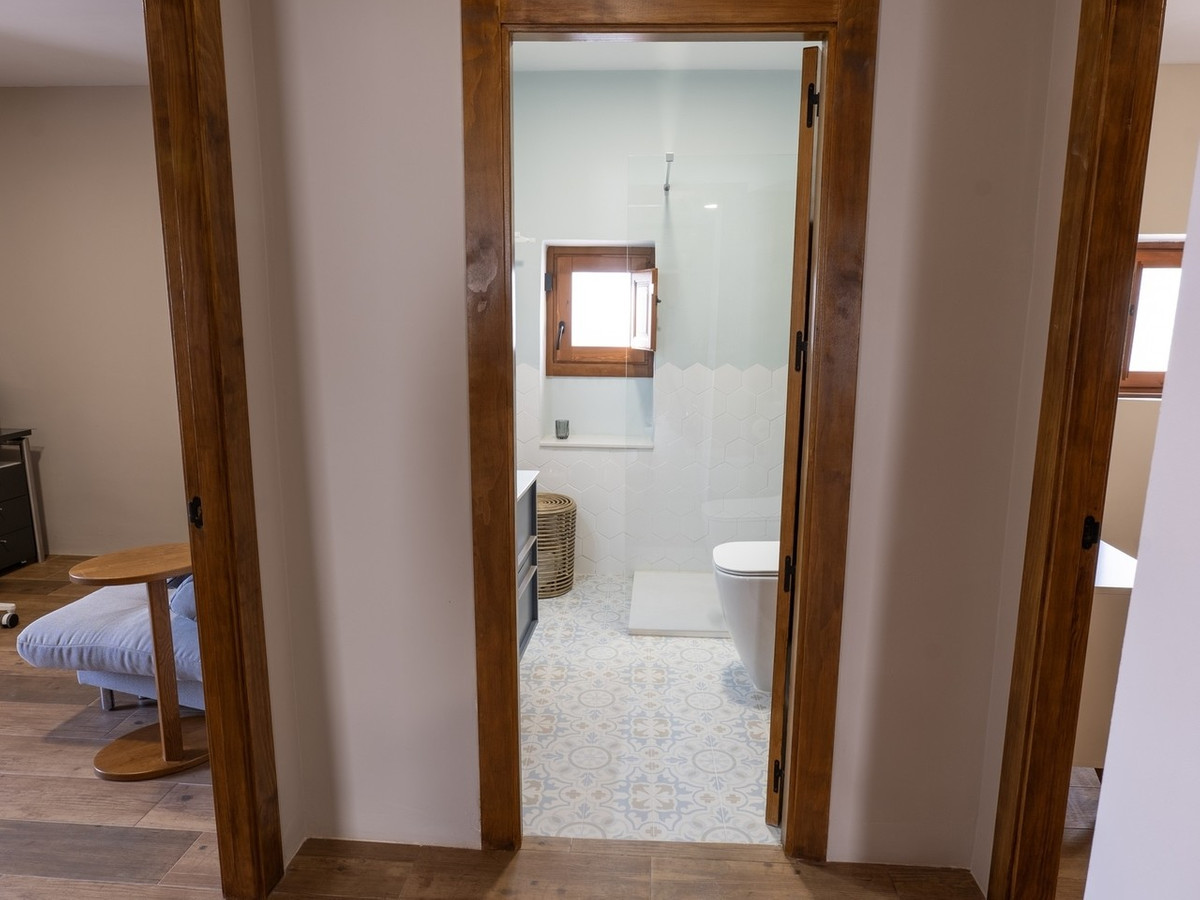 The upper level is dedicated entirely to a 45 square metre master suite, featuring high wooden ceilings, a spacious bedroom, a separate dressing room, and a bathroom. Warm ochre and white tones, terracotta floors fired in traditional kilns, and handmade tiles enhance the home’s authentic Andalusian soul. Comfort is assured with central heating and air conditioning, while fitted wardrobes, private terraces, and uncovered outdoor spaces add to the practicality and charm.