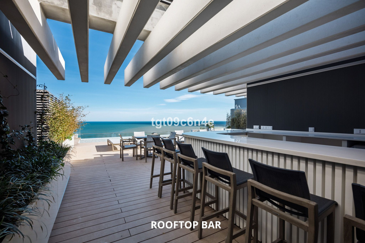 South-east oriented, located on the 14th floor, it boasts spectacular sea views, not only from its spacious covered terrace but also from the living areas, the living-dining room, the kitchen, and the master bedroom. The terrace offers unobstructed 180º views of the endless sea, the beach, the Antonio Banderas promenade and the city of Malaga.