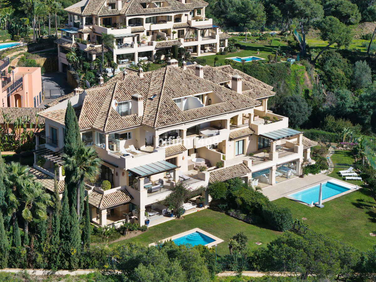 Denna exceptionella trerumslägenhet i hörnläge är belägen i det mycket eftertraktade Aloha Park, i hjärtat av Nueva Andalucía, ett av Marbellas mest prestigefyllda bostadsområden. Lägenheten är placerad strax ovanför den välkända Aloha Golf Club och erbjuder en unik kombination av lyx, komfort och lugn, omgiven av frodiga trädgårdar, böljande golfbanor och enastående utsikt över La Concha-berget och Medelhavet.