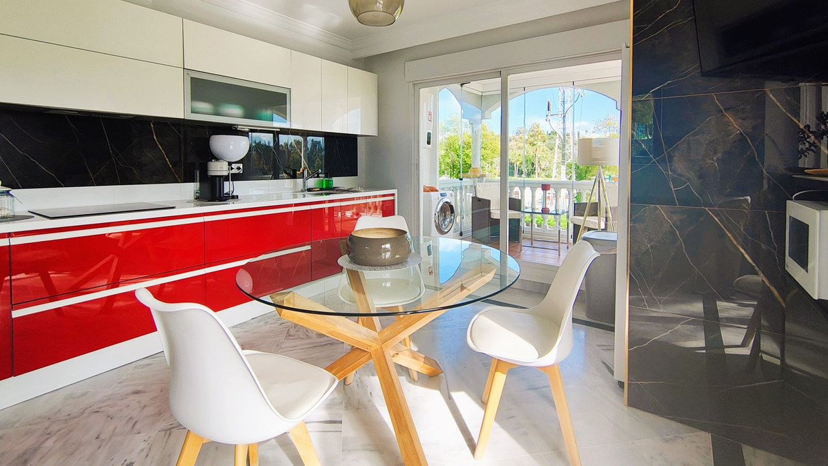 We are pleased to present this exceptional corner apartment, perfectly situated in one of the most strategic and sought-after locations in Nueva Andalucía. Located on the first floor with a bright Southeast orientation, this property stands out for its natural light and its privileged position within a prestigious gated community.