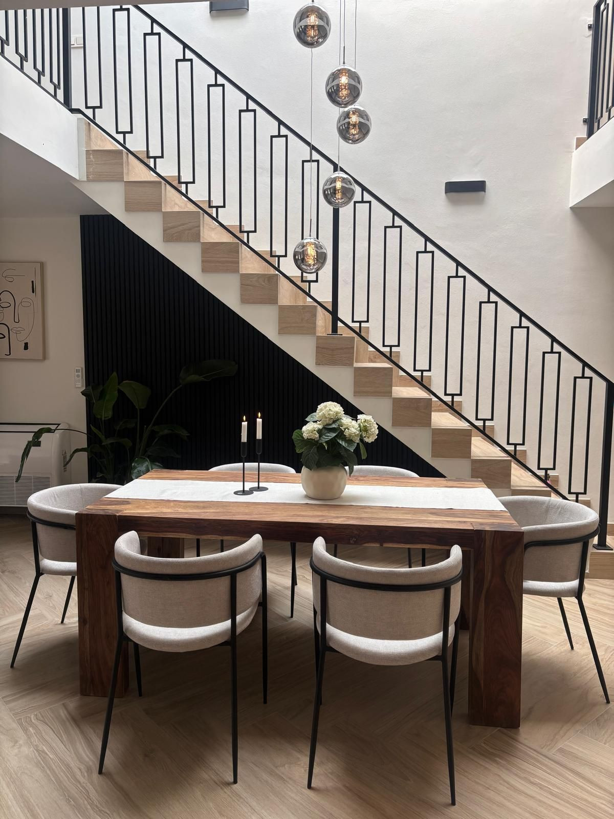 På övervåningen finns tre rymliga sovrum, alla med egna badrum, inklusive master bedroom med privat terrass.