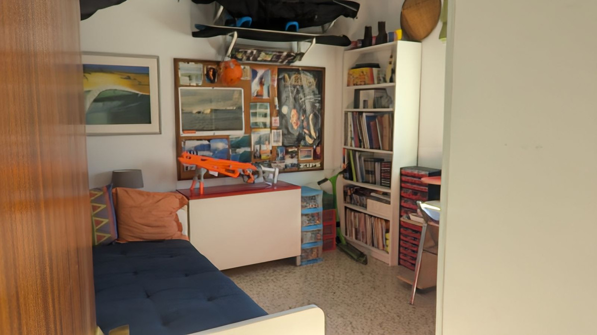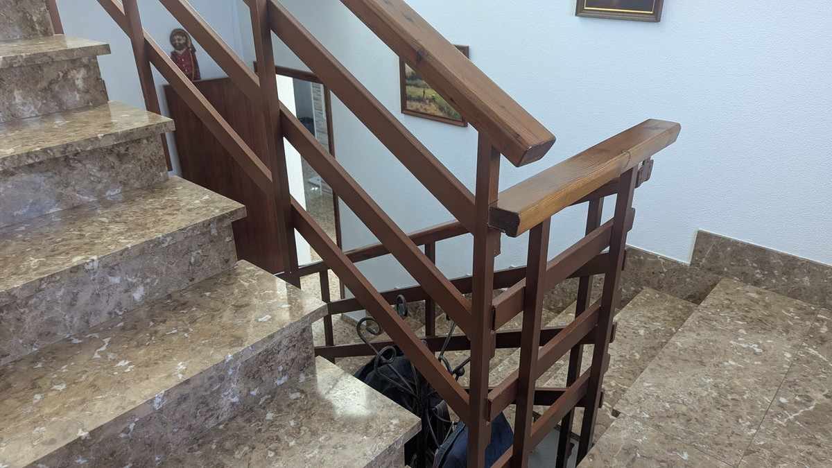 On the ground floor, you will find a cosy living room, an independent kitchen, two bedrooms and a full bathroom. The upper floor, accessed via a wide and comfortable staircase, features three bedrooms with built-in wardrobes and a second full bathroom — perfect for large families, guests, or a home office.