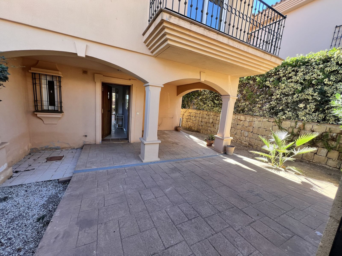 On the ground floor, there is a spacious living-dining area with great natural light, an independent kitchen with the possibility of being opened up to the living room with a minor renovation, a guest toilet, and a separate utility/laundry room. The property features centralized air conditioning and marble flooring.