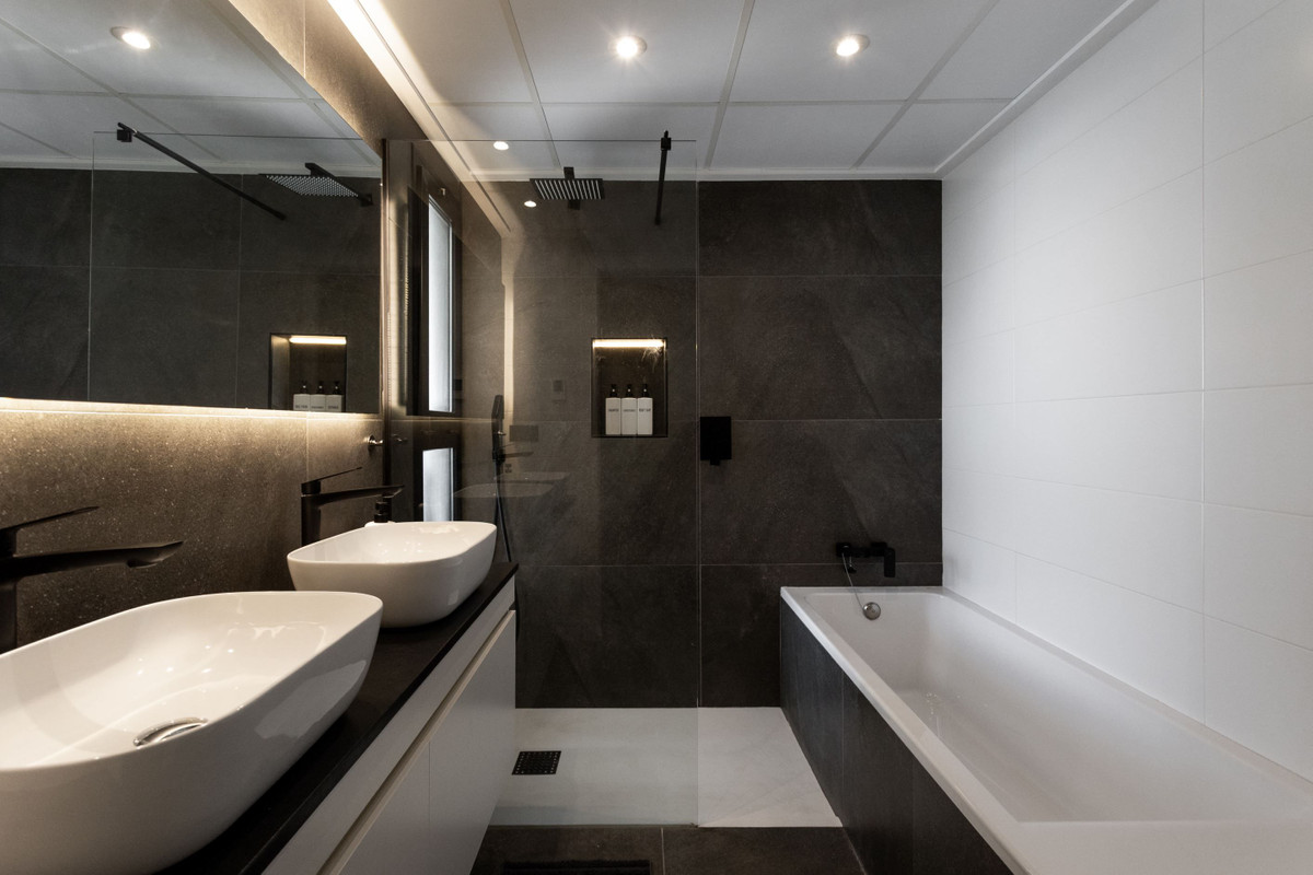 Redan vid första steget in i bostaden möts du av en stilfull och genomtänkt miljö där arkitektur och komfort går hand i hand. Tre rymliga sovrum skapar gott om plats för både familj och gäster, och de fyra eleganta badrummen – alla utförda i moderna och tidlösa material – ger hemmet en exklusiv karaktär som känns i varje detalj. Här är varje rum utformat för att ge lugn, rymd och en känsla av att verkligen komma hem.
