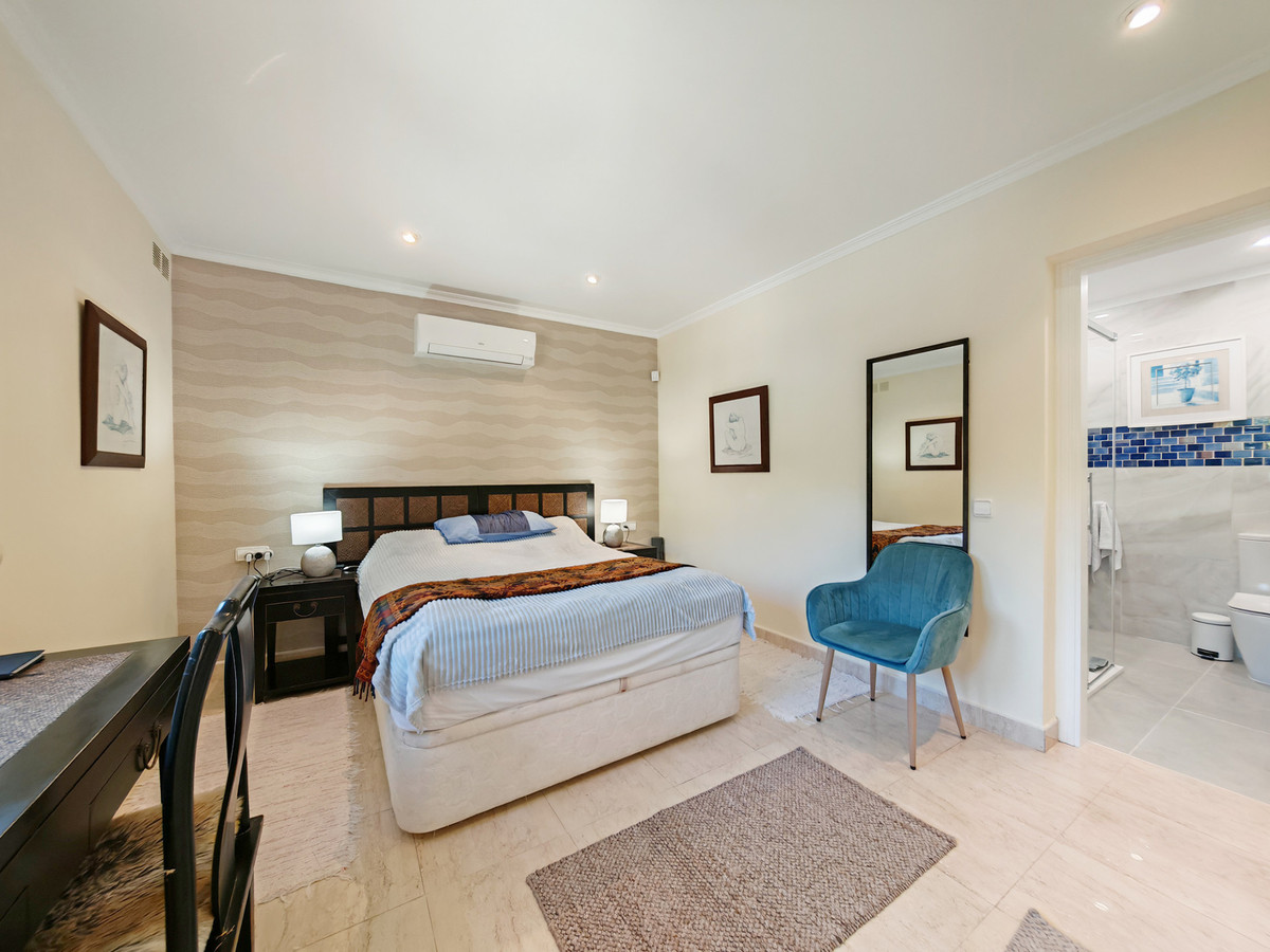 Villa for sale in Elviria, Marbella with 3 bedrooms, 3 bathrooms and with orientation south, with private swimming pool, private garage and private garden. Regarding property dimensions, it has 219 m² built and 1,061 m² plot. Has the following facilities amenities near, transport near, air conditioning, partly furnished, fully fitted kitchen, utility room, fireplace, double glazing, barbecue, living room, water tank, sea view, covered terrace, fitted wardrobes, garden view, panoramic view, underfloor heating (bathrooms), close to sea / beach, close to golf, excellent condition, close to shops, close to schools, pets allowed and roof terrace.