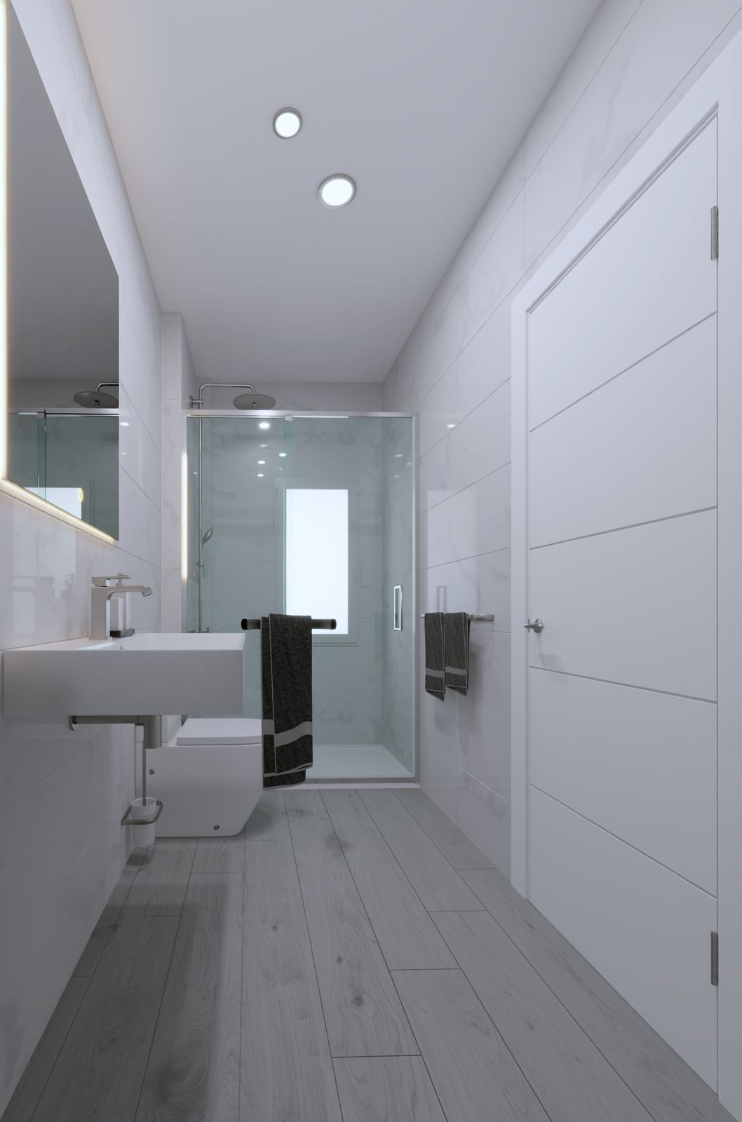 Cada apartamento dispone de una cocina totalmente equipada, con muebles altos y bajos y electrodomésticos como vitrocerámica, campana extractora, lavadora y frigorífico, todo diseñado para ofrecer comodidad y funcionalidad.