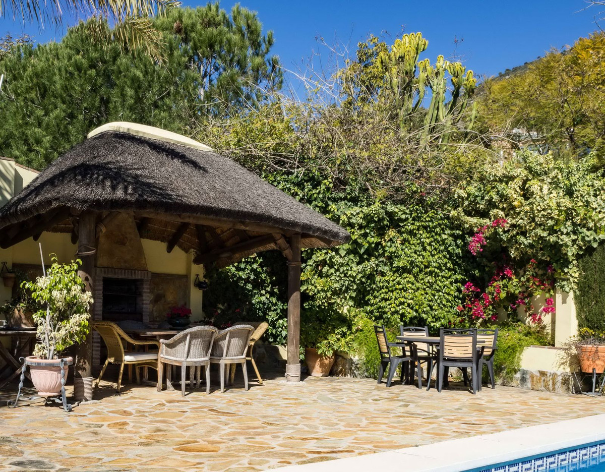 EXTERIÖR: Fantastisk täckt terrass omgiven och skyddad av stora panoramafönster. Underbart poolområde med pergola i balinesisk stil och grillplats, perfekt för måltider "utomhus". Fantastisk fastighet för underhållning!! Inte förbisedd – MYCKET PRIVAT ENKLAV. Utomhusel är förberedd för framtida installation av ett utomhuskök, om så önskas. Mogna anlagda trädgårdar med fruktträd, palmer, jakarandas och vackra stenpartier, automatisk bevattning och gott om nattlampor. Enkelt underhåll. Och mycket, mycket mer! MÅSTE SES.