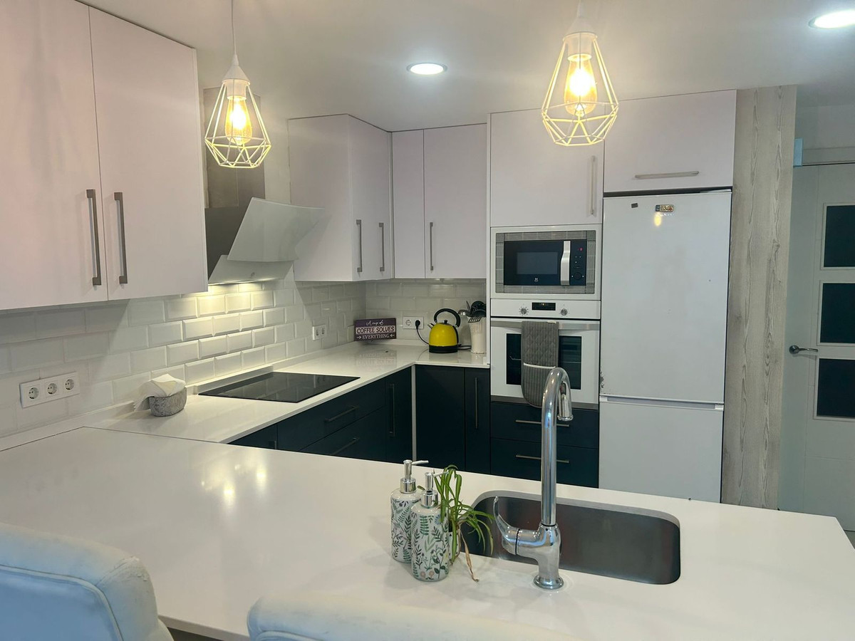 Nyligen renoverat radhus i Arroyo de la Miel som erbjuder modern komfort och rymliga ytor i hela bostaden. Fastigheten har tre sovrum, inklusive ett master bedroom med klädkammare samt ett annat med inbyggda garderober. Det finns två fullt utrustade badrum, ett med hydromassagebadkar och det andra med en rymlig dusch utan tröskel. Det stilrena köket har renoverats och är utrustat med köksö/halvö samt bänkskivor i Silestone. Ett förråd med dubbel takhöjd ger utmärkt extra förvaringsutrymme. Luftkonditionering med värmepump finns installerad i hela huset, samt en öppen spis i vardagsrummet. Privata uteplatser både fram och bak, säkerhetsjalusier, förstärkt ytterdörr och inga samfällighetsavgifter kompletterar bostaden.