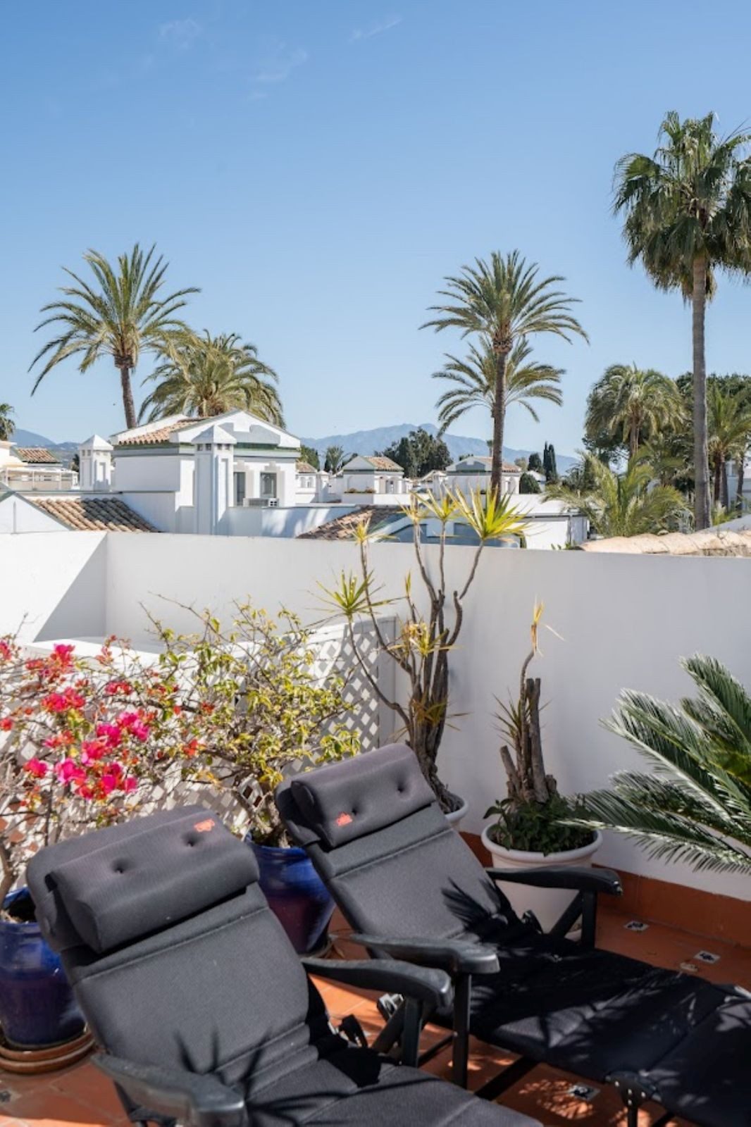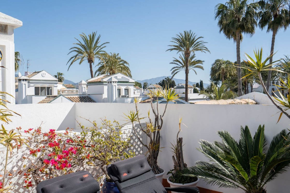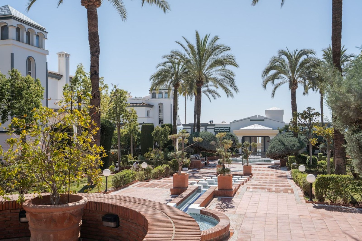 Dominion Beach is an established residential complex renowned for its distinctive Andalusian architecture and lush subtropical gardens, which create a serene, tropical setting. The complex boasts a range of first-class amenities, including three outdoor swimming pools, a children's pool and a wellness centre offering massage treatments. The beachfront communal terrace offers direct access to the sea, ideal for enjoying the Mediterranean climate, whilst the summer beach bar and full-service restaurant provide a relaxed dining experience by the sea. The gated community features 24-hour security for your peace of mind, a gym, a social area and a management office. For water sports enthusiasts, there is a private ramp to facilitate access to jet skis, water skiing and windsurfing. The area is well connected to shops, restaurants and playgrounds, making it an ideal choice for both families and professionals. With its peaceful surroundings, excellent amenities and prime location, this duplex penthouse offers a perfect combination of luxury and comfort in Estepona.