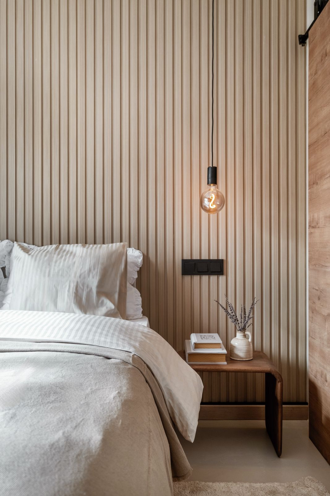 The custom-designed kitchen forms the heart of the home, finished with premium materials and integrated high-end appliances. Carefully selected textures and warm tones create an inviting yet sophisticated atmosphere throughout the residence.