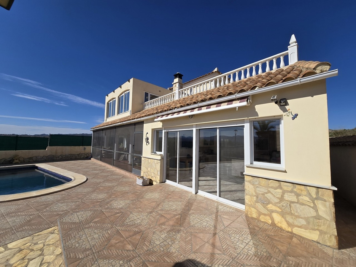 This is an immaculate, detached villa on a reasonable sized plot with private swimming pool and parking, located in the quiet, inland village of Los Carasoles within minutes drive to several other villages and towns such as Zurgena, Arboleas and La Alfoquía.