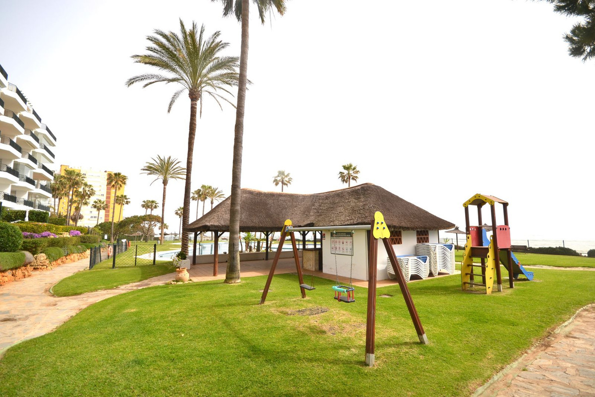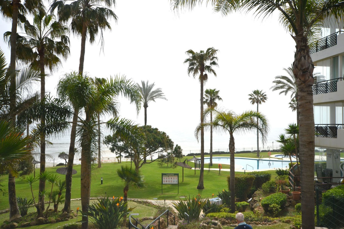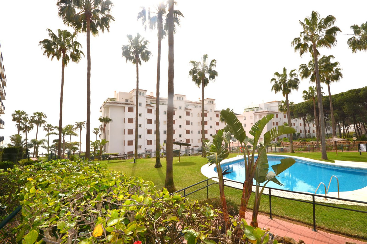 Detta är en sällsynt möjlighet att säkra en trädgårdslägenhet i ett premiumkomplex vid stranden i Calahonda.