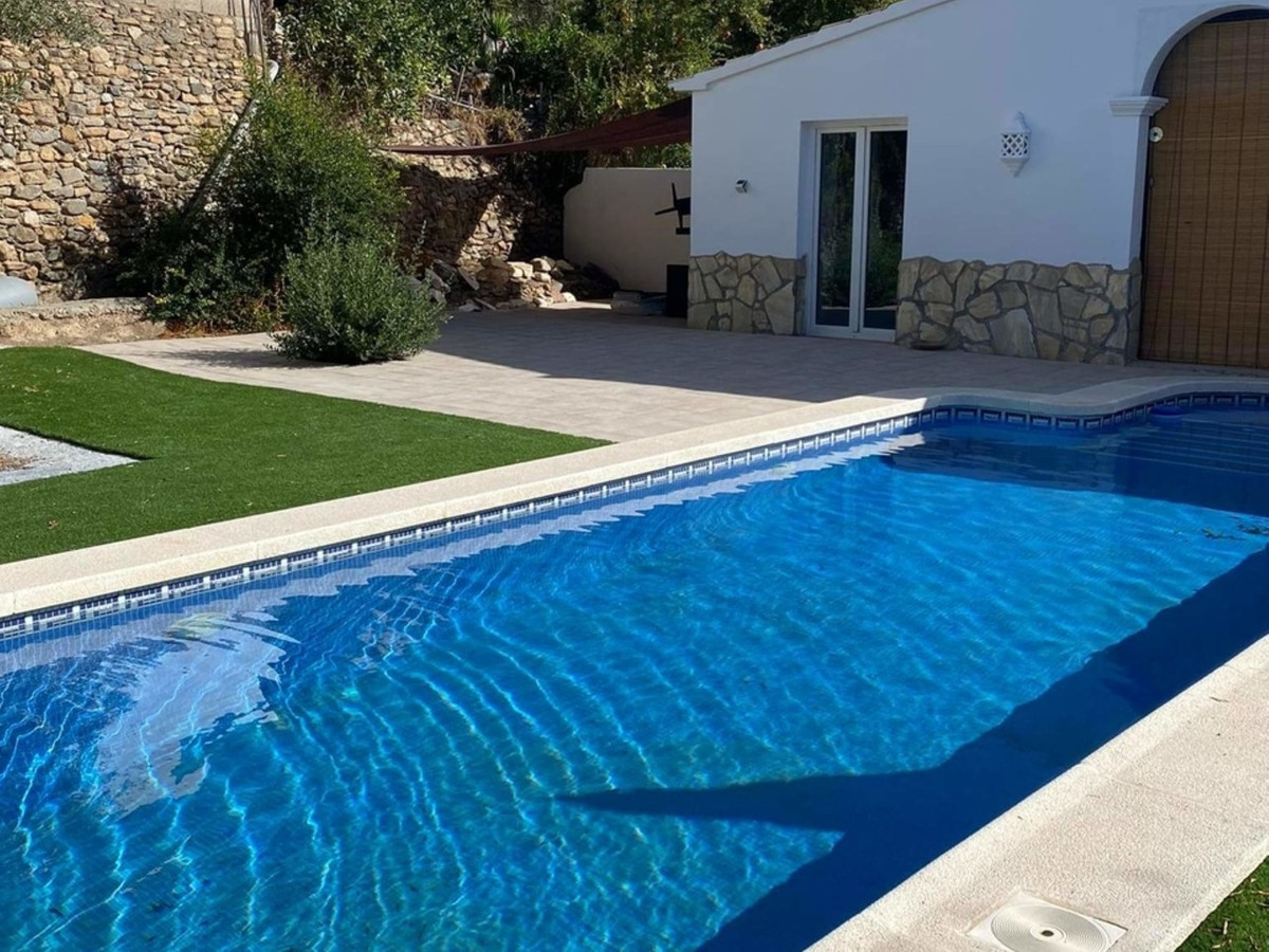 At pool level, the property enjoys a fully walled and secure private garden with beautiful open views. The pool house overlooks the swimming pool and incorporates a bar area, dining space, and two double bedrooms, each with en-suite bathrooms. This outdoor area has been designed for both relaxation and entertaining, offering ample space for sunbathing or shaded seating, established plants and trees, and a layout that creates a true private retreat with outstanding views.