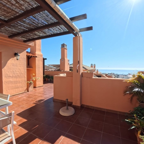 Generous terrace featuring both enclosed and open areas, with pleasant lateral sea views
