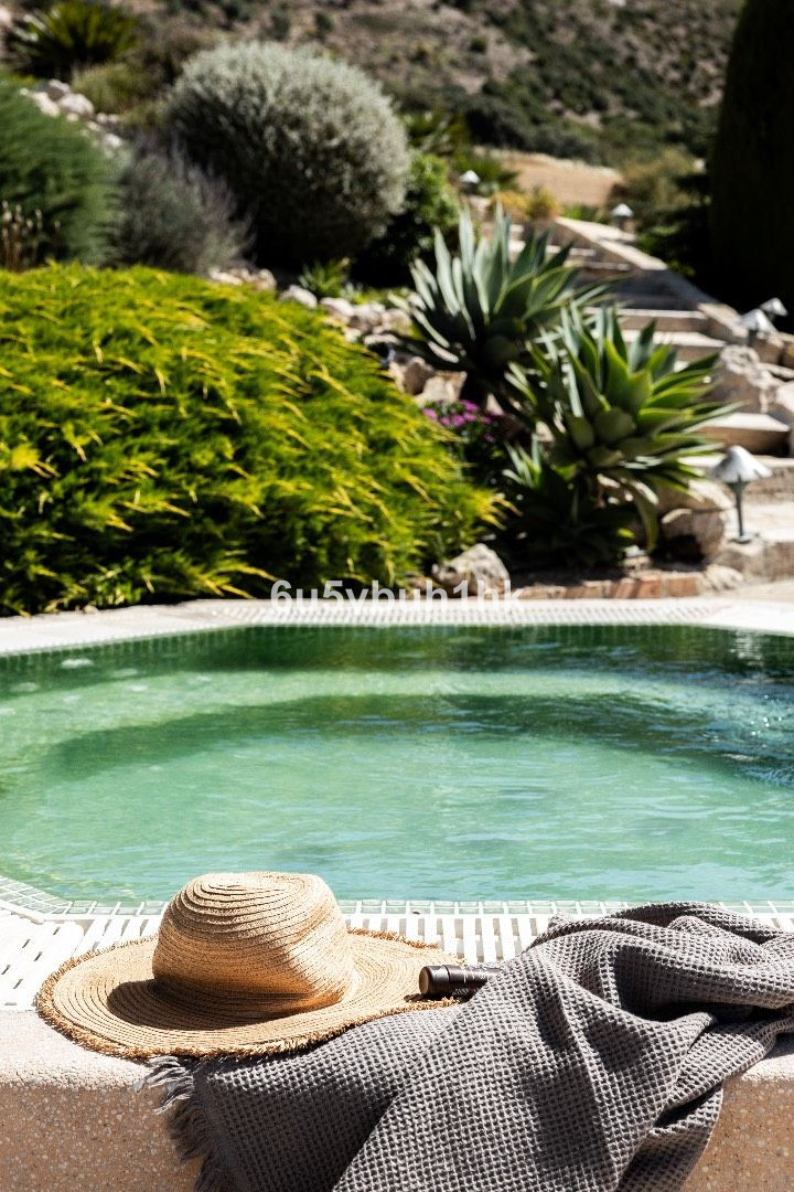 The estate is surrounded by mature, carefully curated Mediterranean gardens — each plant intentionally placed, creating a landscape that feels established and deeply personal. The ecological olive grove produces its own small-batch olive oil, and the owners harvest manzanilla to prepare their own tea — a rare and authentic connection to the land.