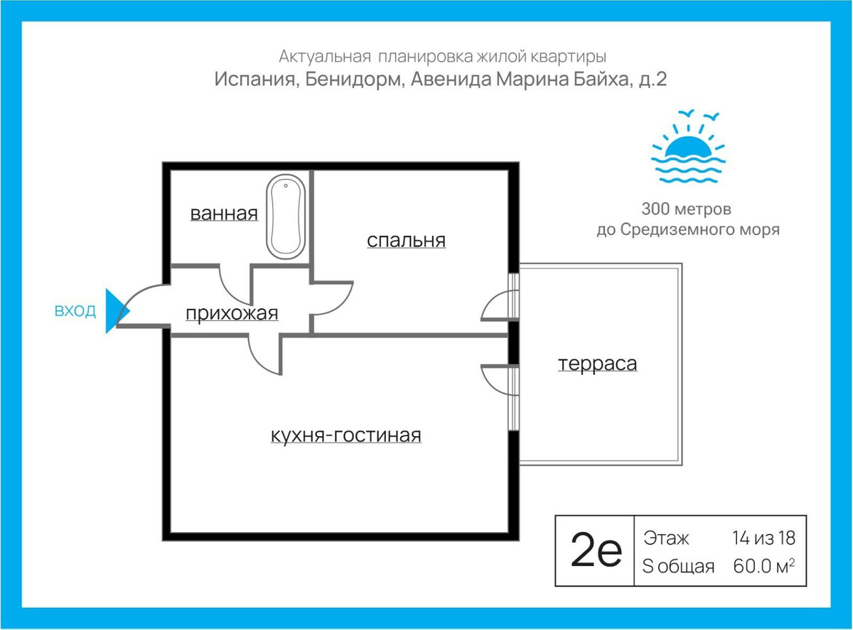 For sale Apartment. Location Benidorm (ALICANTE). Total area 48.00 m2. Number of rooms – 1. Number of bedrooms 1. Number of bathrooms 1. Year of construction 1988. Distance to the sea 300 m. Orientation South.