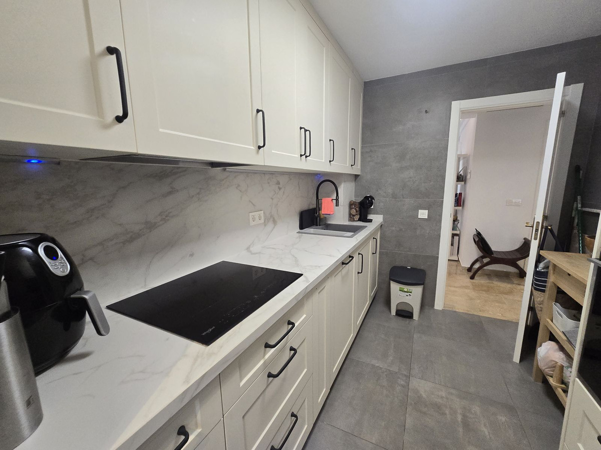 Underbart möblerad lägenhet med 2 sovrum och 2 badrum i det eftertraktade området Calahonda, Mijas. Helrenoverad och med vacker havsutsikt har denna fastighet en stor terrass i söderläge med glasgardiner, vilket gör att du kan njuta av utomhusutrymmet året runt.
