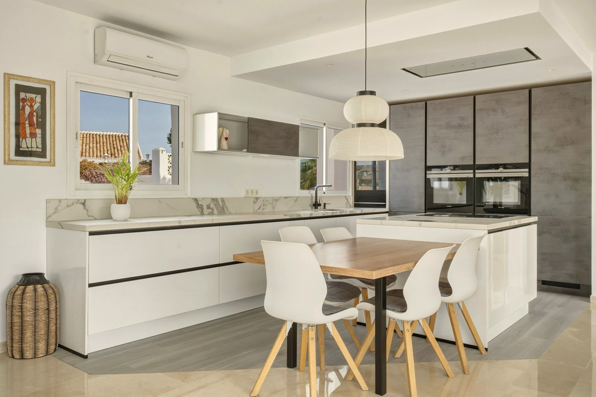 Villan har nyligen renoverats till högsta standard och har anpassats för en bekväm och funktionell livsstil. Den är idealisk för permanent boende, semesterboende eller som investering, eftersom den erbjuder flera separata bostadsytor, var och en med eget kök. Huvudköket är av hög kvalitet från Siemens, och villan har totalt tre fullt utrustade kök, inklusive ett kök på bottenvåningen med tvättdel och extra kylskåp. Huvudköket har även stämningsbelysning som skapar en varm och trivsam atmosfär på kvällarna.