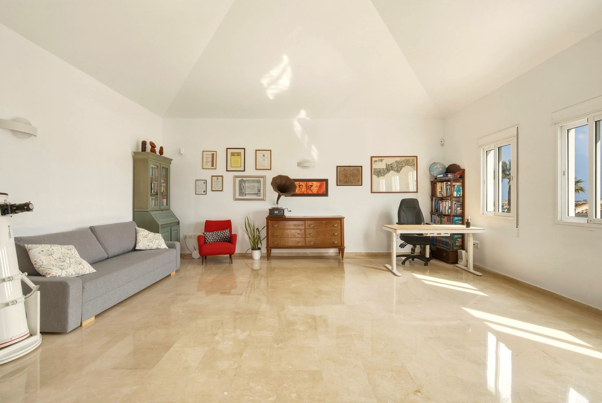 Villan har sex sovrum, fyra badrum och två rymliga vardagsrum. Huvudplanet består av tre sovrum, två badrum, ett vardagsrum med öppen spis, matplats samt utgång till en vacker veranda-terrass med spektakulär sydvästlig utsikt över bergen och Mijas.