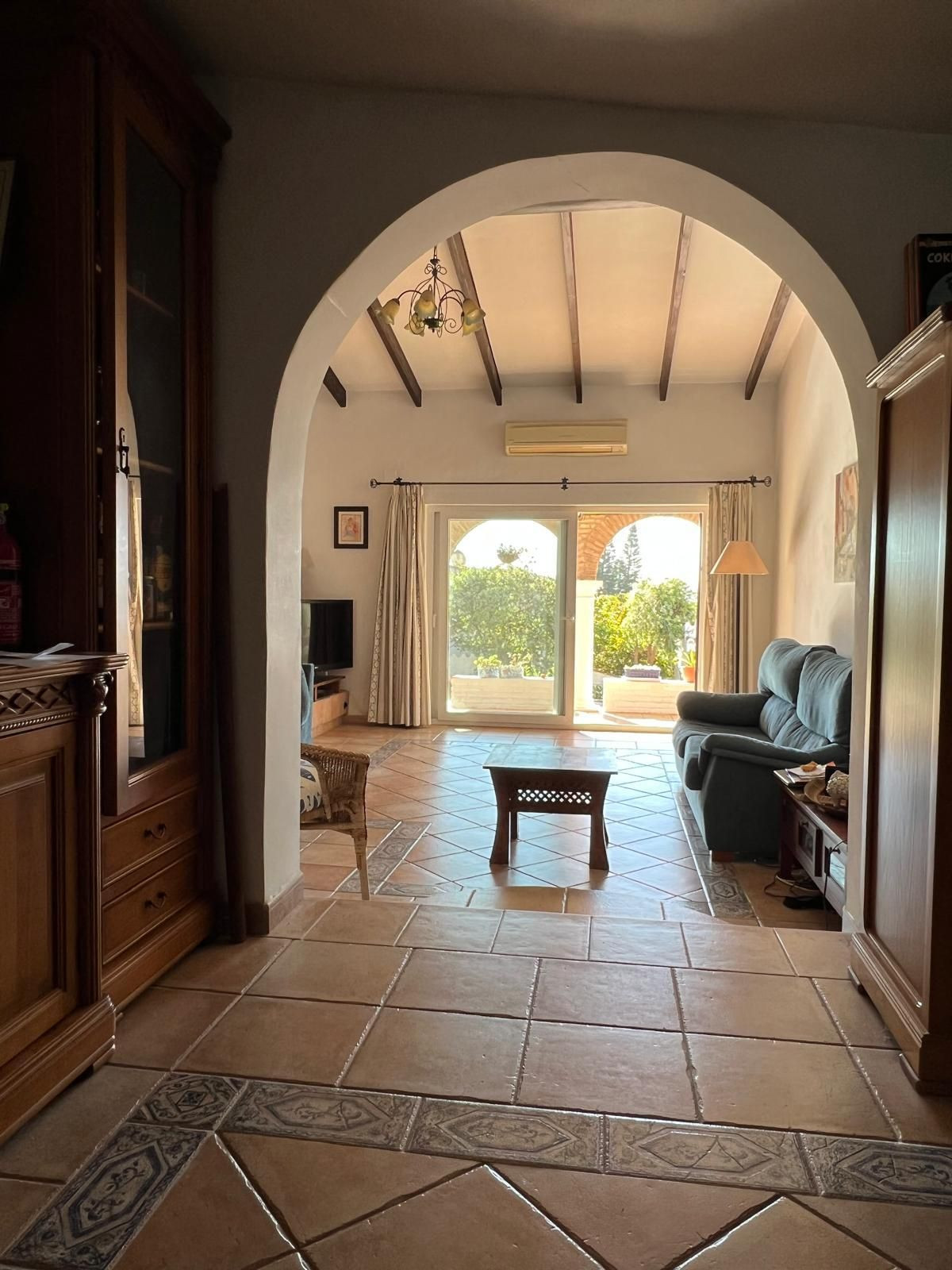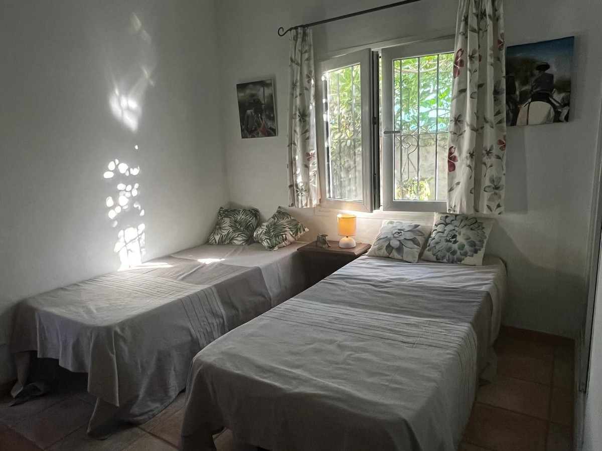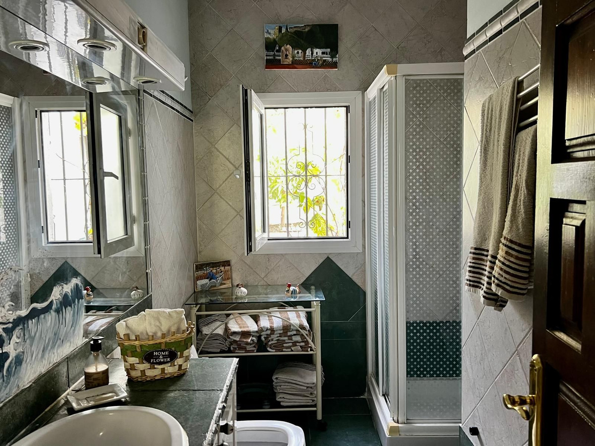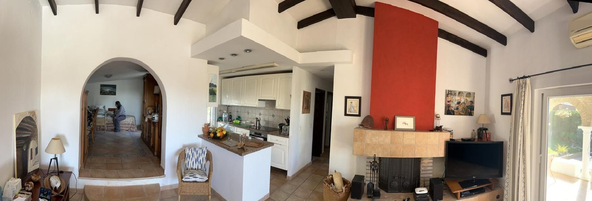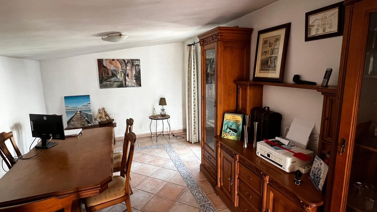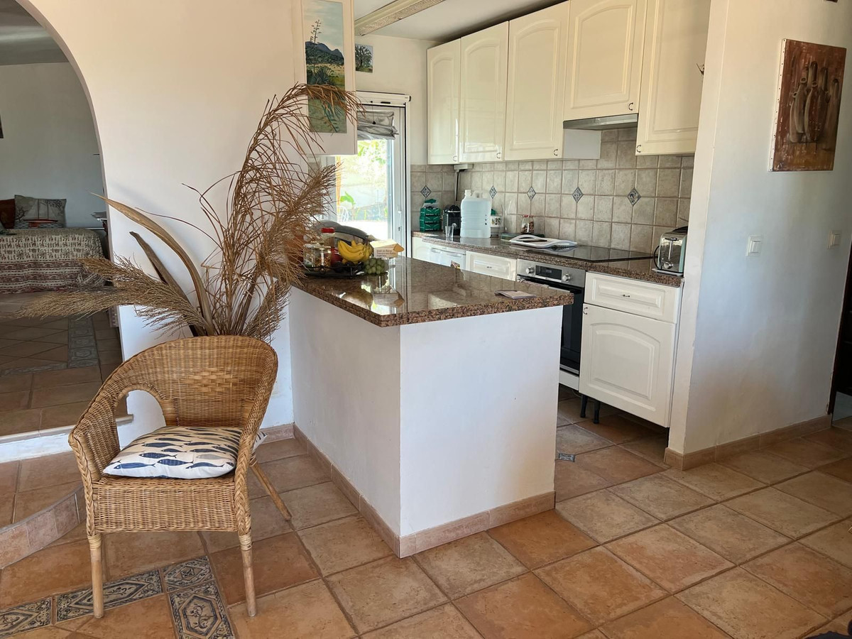 Invändigt erbjuder huset ett öppet och inbjudande kök som ansluter till ett rymligt vardagsrum och matrum. En vedeldad öppen spis, synliga träbjälkar och bågar i andalusisk stil ger rummet värme och personlighet. Huset är dessutom utrustat med luftkonditionering, vilket säkerställer komfort året runt.