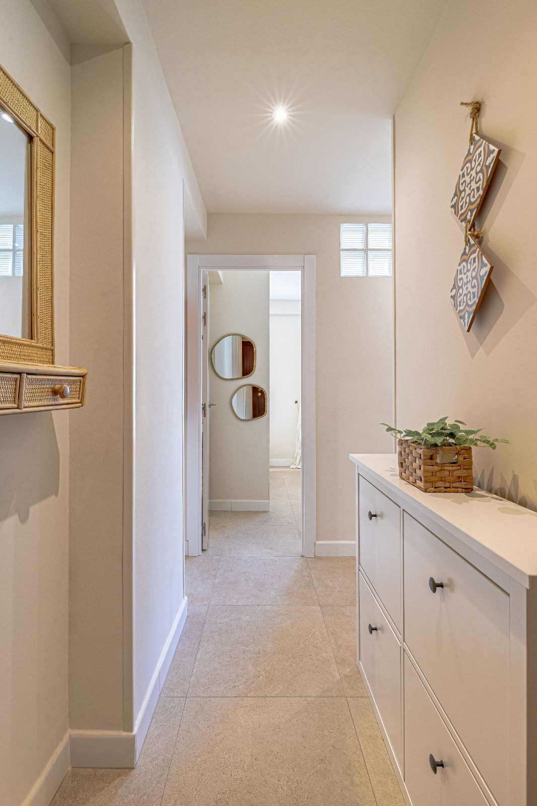 This elegantly refurbished apartment has been tastefully decorated in a beautiful boho-chic style and features seamless indoor-outdoor living with large folding accordion doors that open the living area onto a west-facing terrace – perfect for spectacular sunsets over the Mediterranean.