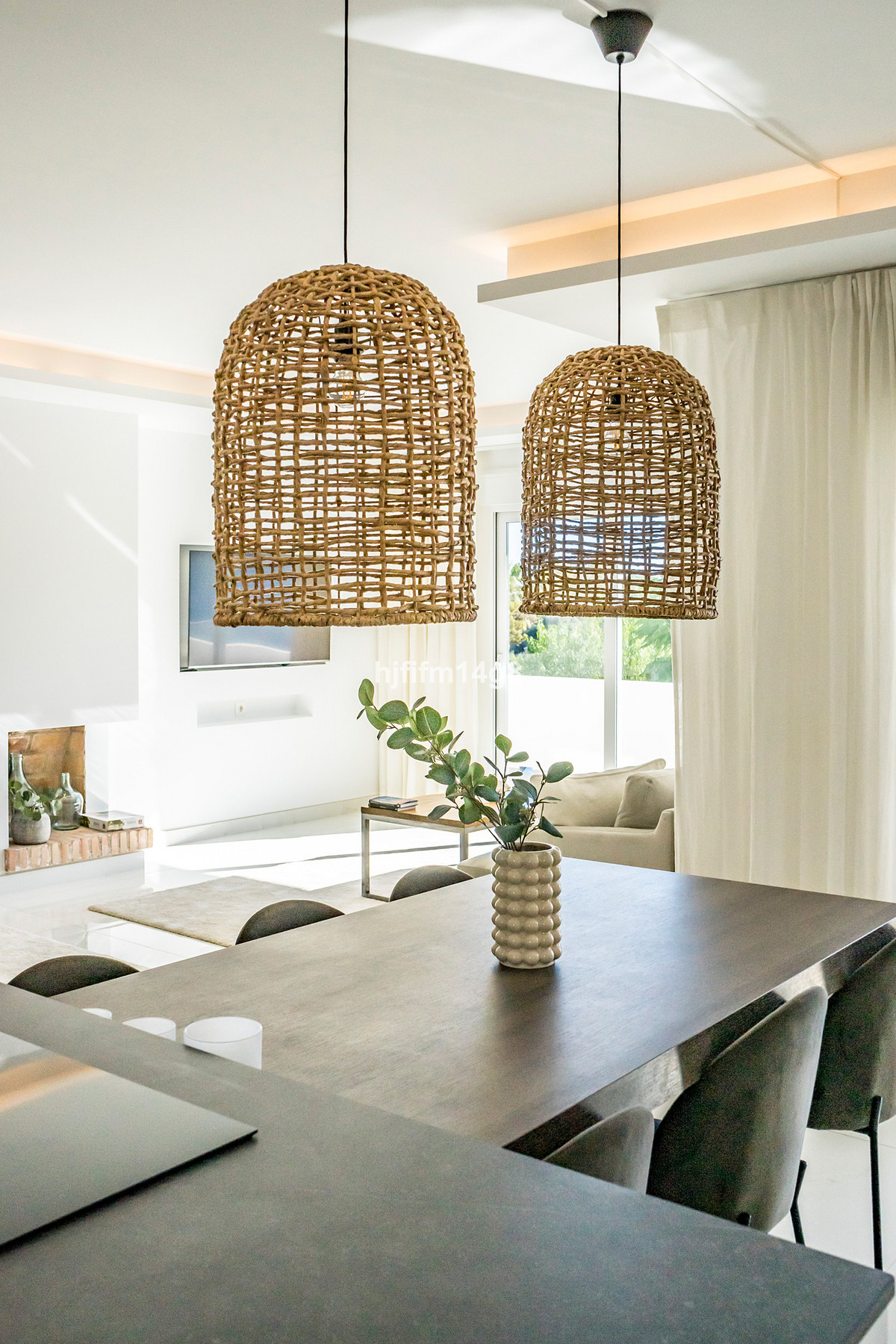 Själva takvåningen har totalrenoverats till hög standard och har vackra vyer över bergen, golfbanan och delvis havsutsikt. Interiören är utformad med modern livsstil i åtanke och har ett öppet, fullt utrustat kök med frukostbar som smidigt övergår i den kombinerade mat- och vardagsrumsdelen. Detta ljusa och rymliga vardagsrum öppnar direkt upp mot en generös terrass med gott om plats för utomhusmåltider och avkoppling medan man njuter av omgivningarna.