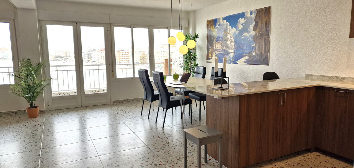 Från varje rum kan du njuta av fantastisk panoramautsikt över havet, vilket skapar en ljus och avslappnande kustkänsla i hela bostaden. Stranden Playa de Los Locos ligger precis nedanför byggnaden, så du når strandpromenaden och sanden på bara några ögonblick.