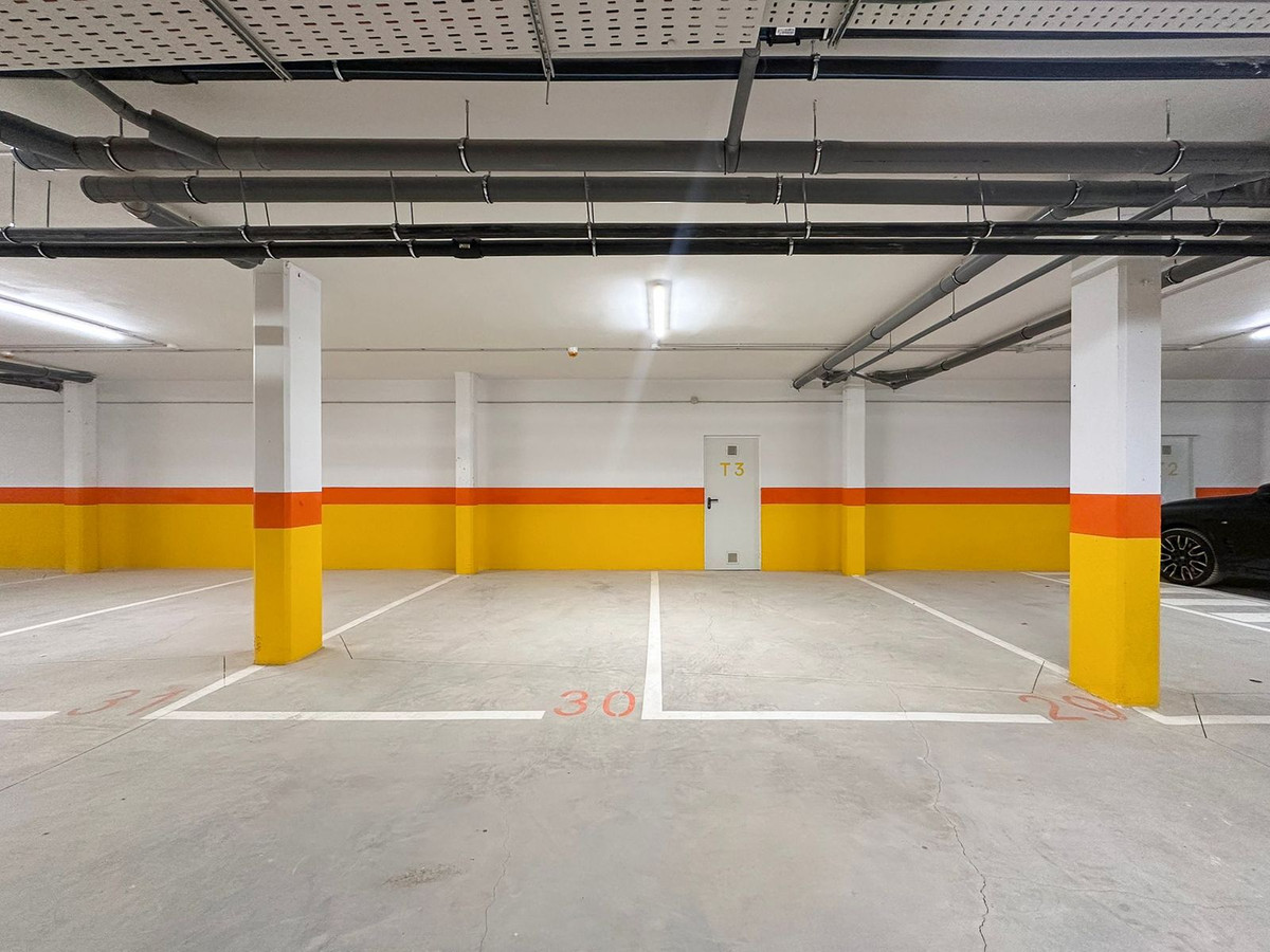 The apartment also benefits from two private parking spaces and an additional 16.29 m² storage room located in the garage directly behind the parking spaces.