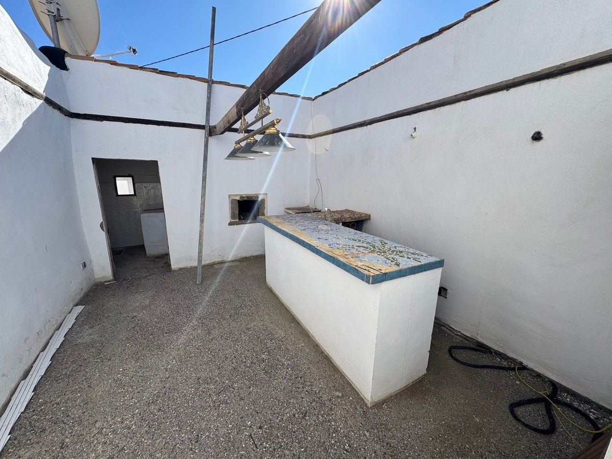 Adjacent to the terrace is a netted enclosure which, with some refurbishment, could serve as a delightful outdoor dining area. This space connects conveniently to a private courtyard that features a traditional pizza oven, offering excellent potential for the creation of an outdoor kitchen or bar area, perfectly suited to enjoying the Mediterranean lifestyle.