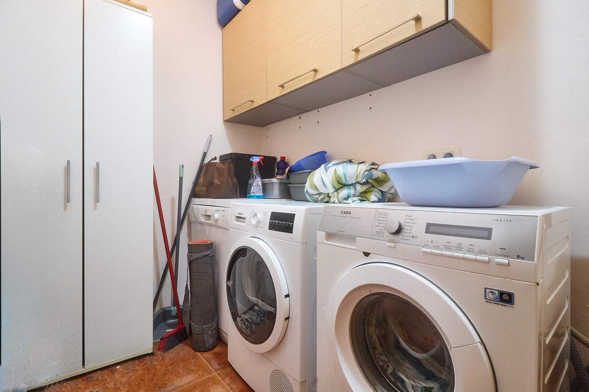 Källarvåningen inkluderar ett garage, tvättstuga och ett stort, mångsidigt utrymme med flera möjligheter.