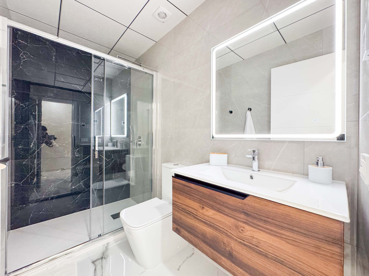 Två nästan identiska lägenheter till salu, belägna endast 50 meter från Playa del Cura i Torrevieja, med ett oslagbart läge både för permanentboende och investering. Bostäderna ligger på markplan och har två sovrum och två badrum. De har genomgått en totalrenovering med material och finish av högsta kvalitet, med fokus på komfort och modern design.Lägenheterna säljs fullt möblerade och med alla vitvaror inkluderade, redo att flytta in direkt. De erbjuder ett fullt utrustat öppet kök, ett rymligt och ljust vardagsrum med matplats samt modern belysning i hela bostaden. Fönster av hög kvalitet ger utmärkt ljud- och värmeisolering, och bostäderna har även elektriska persienner.Badrummen har golvvärme och lägenheterna är utrustade med centraliserad luftkonditionering med Airzone-system, vilket möjliggör individuell temperaturkontroll i varje rum. På baksidan finns en privat terrass på 20 m², perfekt för en chill-out-zon, utomhusmatplats, fritidsyta eller förvaring. Terrassen har ett inbyggt skåp med tvättmaskin och varmvattenberedare samt en utomhusdusch, perfekt efter en dag på stranden.Ett utmärkt investeringsobjekt tack vare närheten till havet och ett perfekt val för att njuta av kusten året runt. Inflyttningsklara bostäder.